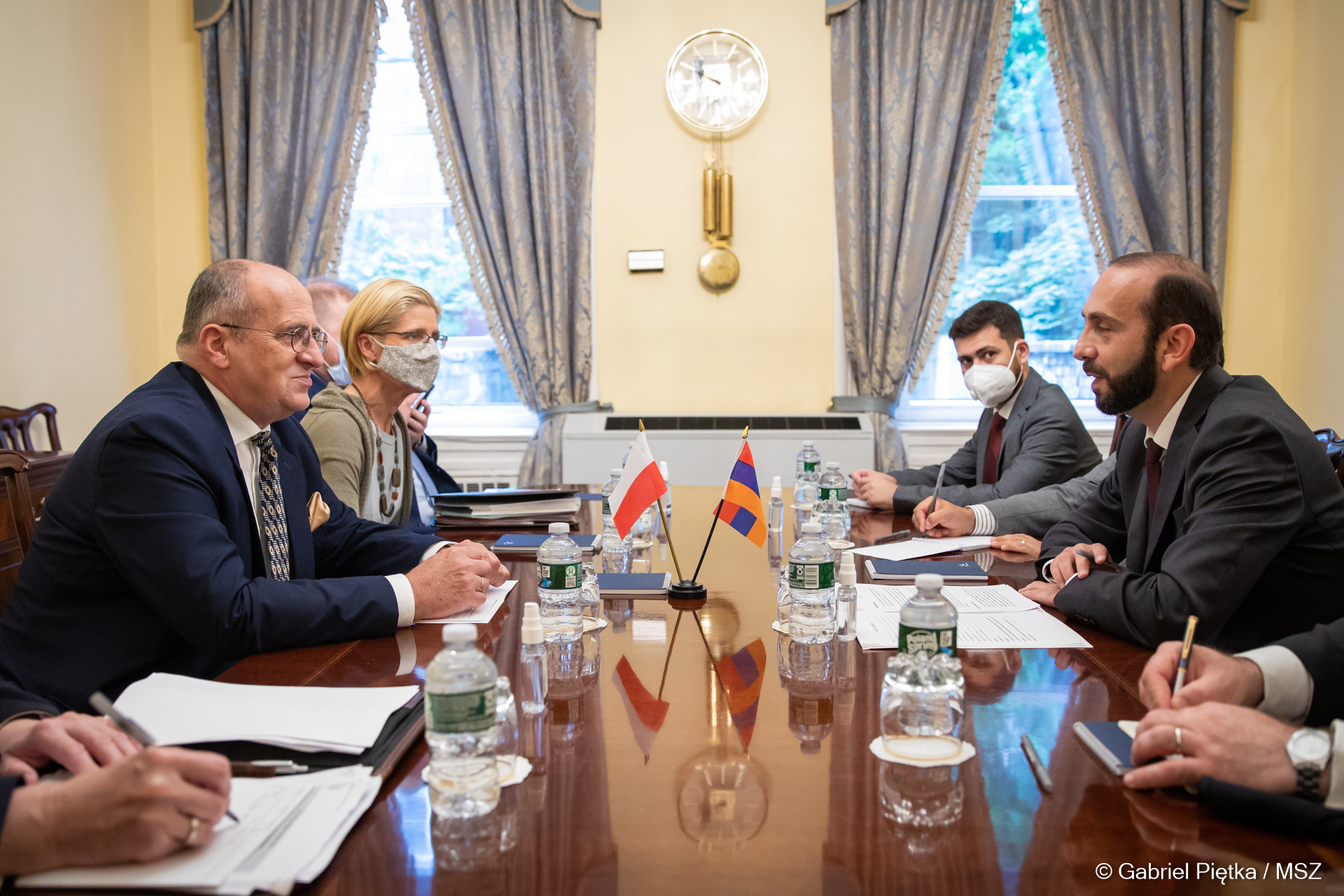 Foreign Minister Professor Zbigniew Rau met with Minister of Foreign Affairs of Armenia Ararat Mirzoyan. The talks covered Poland’s preparations to take the chairmanship of the Organization for Security and Co-operation in Europe in January 2022. The heads of diplomacies met as part of the UN General Assembly session in New York.