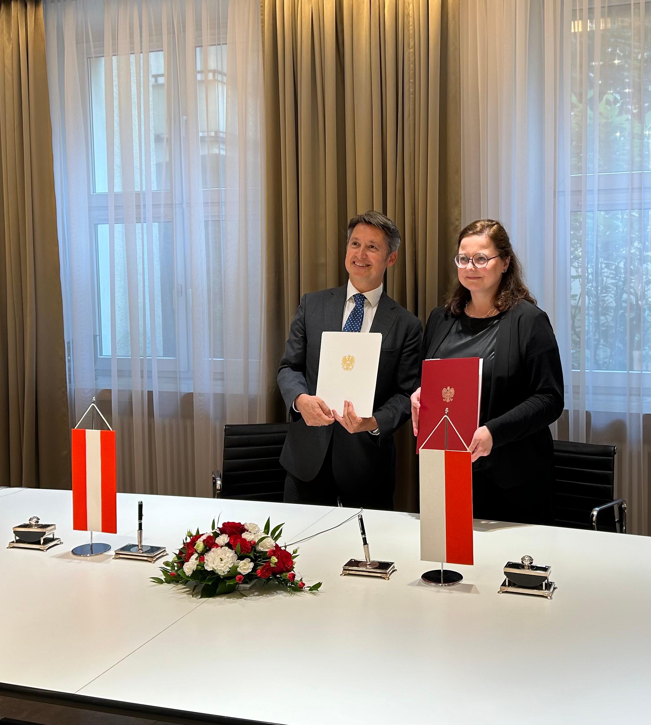 The cooperation programme was signed on 25 June 2024 by the heads of both delegations: Anna Godlewska, Deputy Director of the Department of Public and Cultural Diplomacy at the Polish MFA, and Alexander Wojda, representing Austria's Federal Ministry for European and International Affairs.
