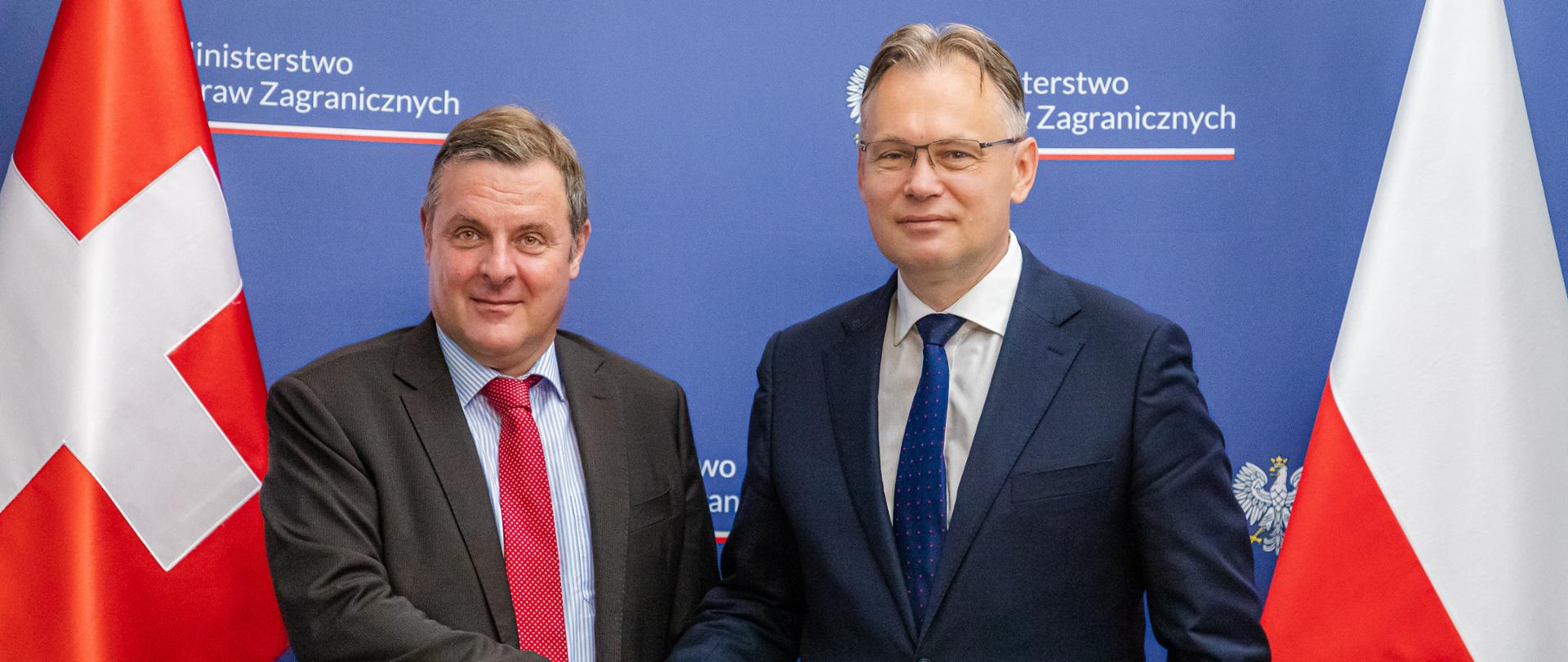 During a meeting on 19 September 2023, the two diplomats discussed Polish-Swiss political and economic cooperation, impact of the Swiss contribution on the development of local and regional cooperation, and Switzerland’s relations with the EU and NATO.