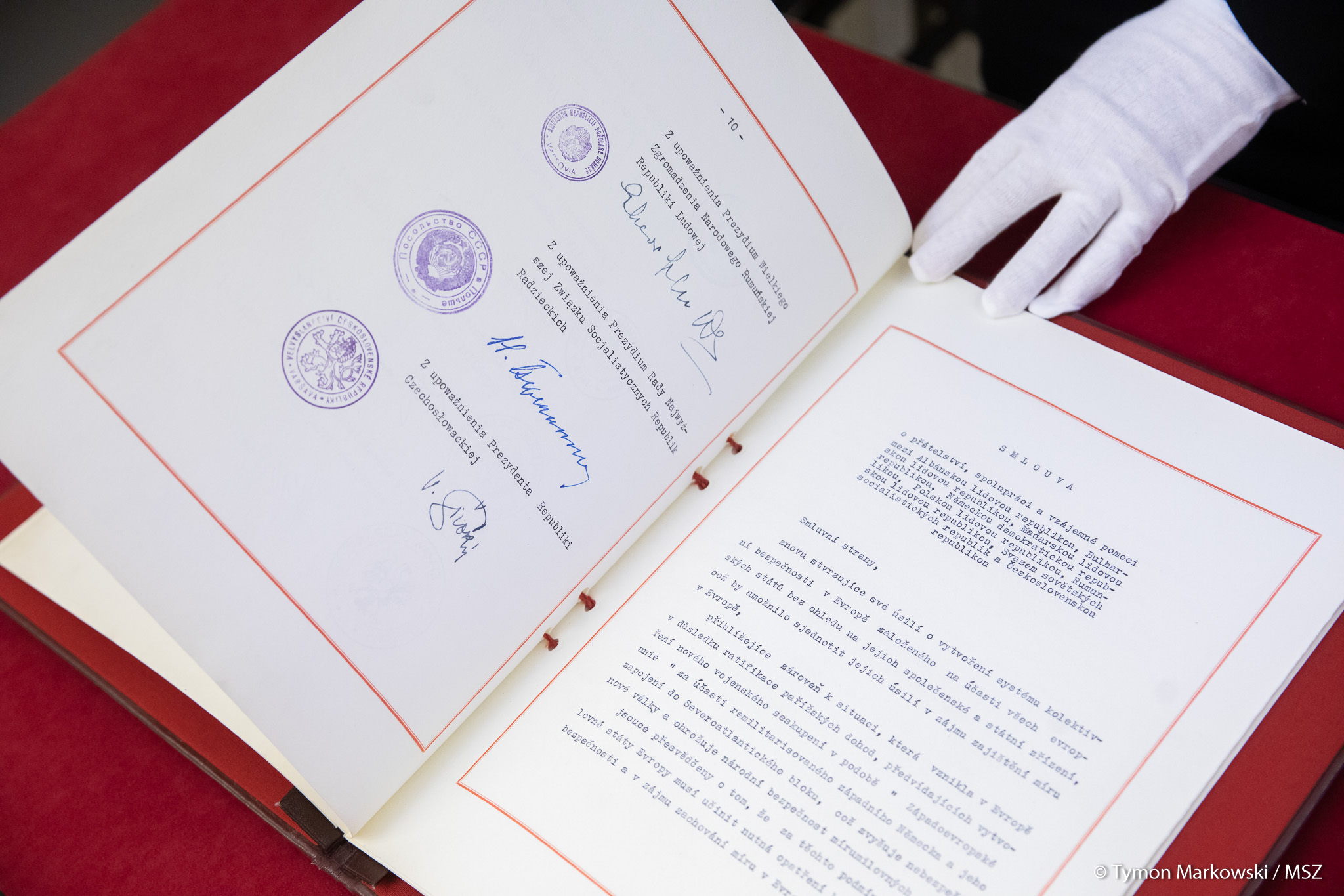 “In a symbolic way we dissociate ourselves from the treaty, recognizing that it is a document of exclusively archival nature (…) We put an end to any international activity of this document,” said Deputy Minister Piotr Wawrzyk during the handing-over ceremony. The event at the MFA headquarters was an occasion to exhibit, apart from the 1955 treaty, documents from 1991 that dissolved the military and political cooperation structures established among former socialist states in Europe as a result of the Warsaw Pact. The documents included: