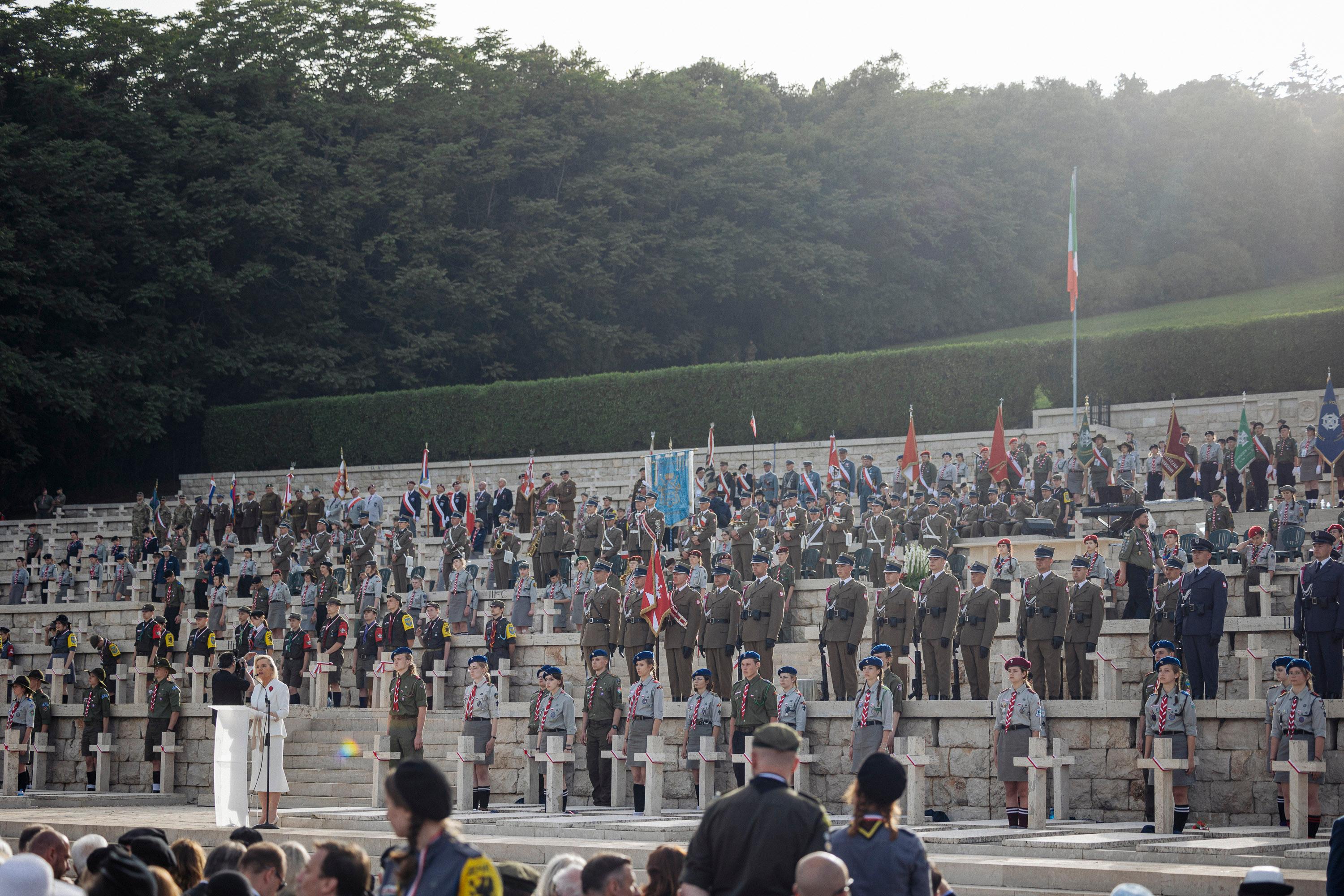On behalf of the Polish Prime Minster, Deputy Minister Anna Radwan-Röhrenschef, who represented the Ministry of Foreign Affairs, laid a wreath at the foot of the Virtuti Militari Cross Memorial at the Polish war cemetery during celebrations to commemorate the 80th anniversary of the Battle of Monte Cassino fought by General Władysław Anders’s Polish II Corps.