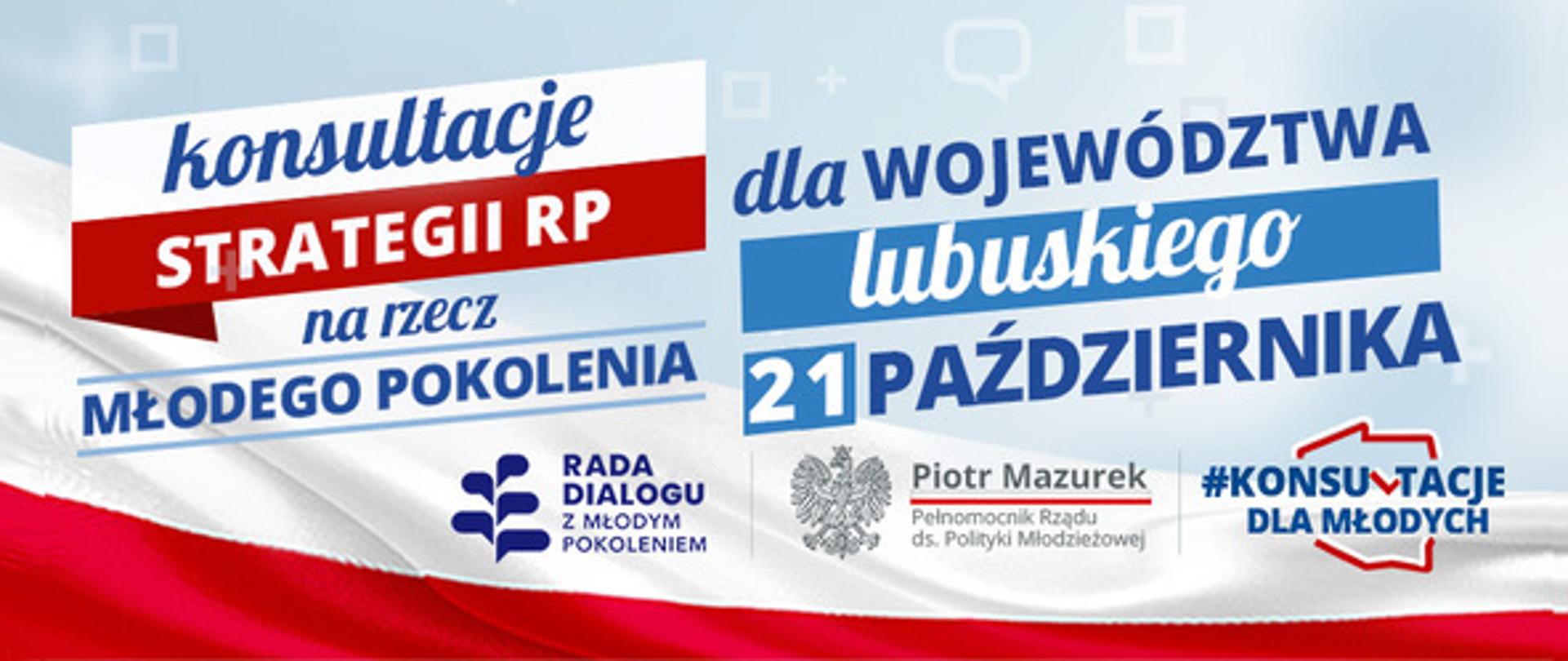 Konsultacje dla woj. lubuskiego rozpoczną się 21 października br. od godz. 17:00. Aby wziąć udział w wydarzeniu należy wypełnić formularz zgłoszeniowy znajdujący się pod następującym adresem: https://strategiamlodych11.webankieta.pl/