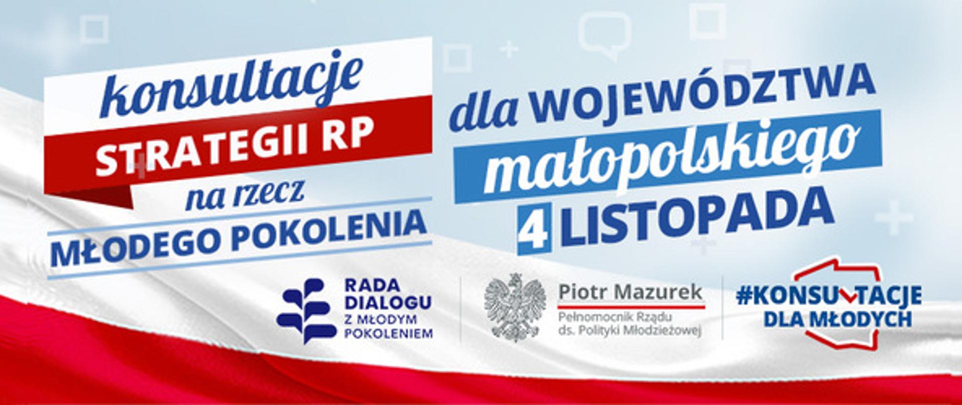 Już 4 listopada odbędzie się kolejna z wojewódzkich konferencji konsultacyjnych, na której wszyscy młodzi ludzie z województwa małopolskiego otrzymają możliwość zgłaszania pomysłów do „Strategii RP na rzecz Młodego Pokolenia”, wieloletniego planu działań państwa w obszarze polityki młodzieżowej. Zapisy przyjmowane będą do 3 listopada (środa) do godziny 12:00.