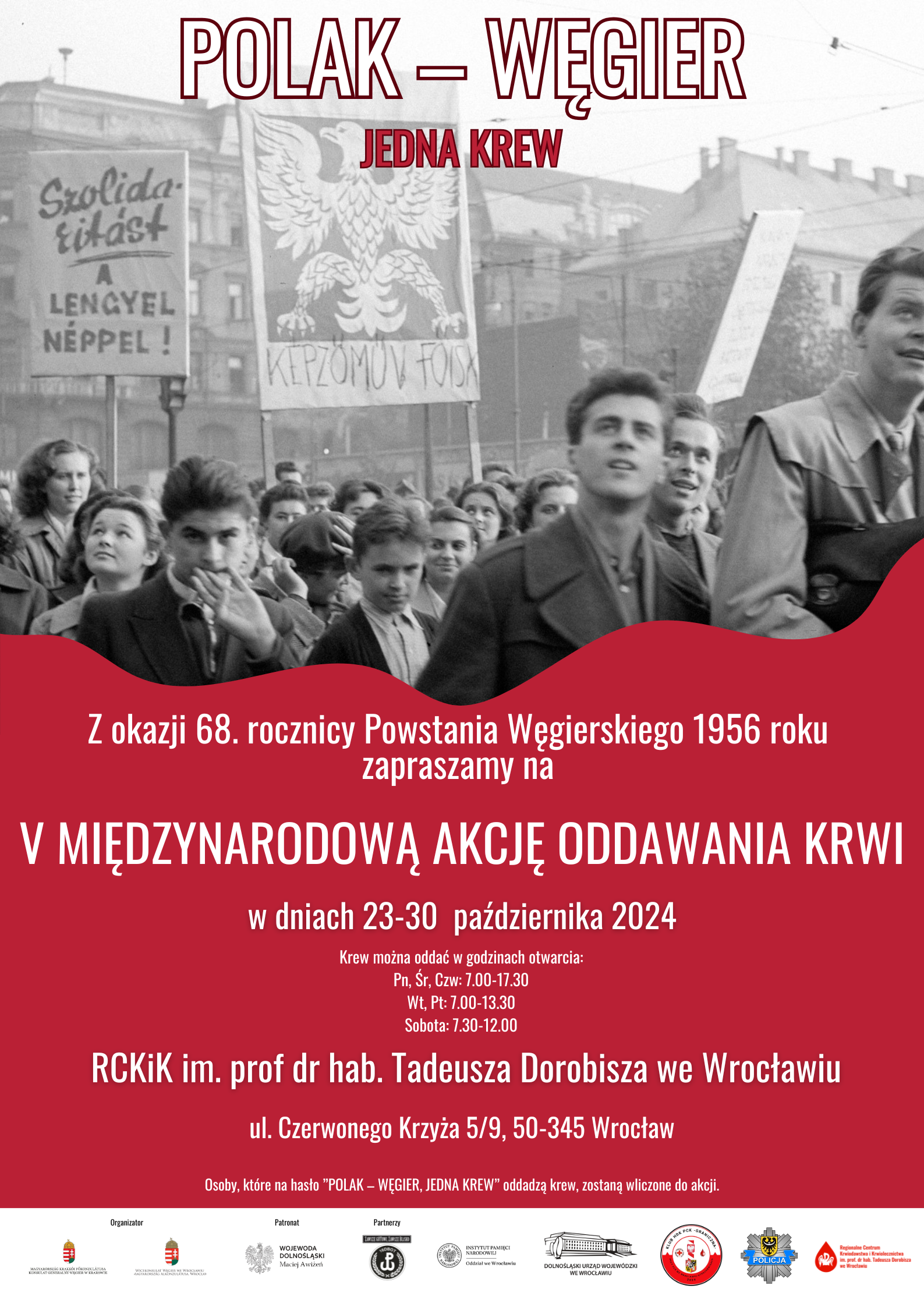 Dodatkowe informacje: https://wroclaw.ipn.gov.pl/wro/aktualnosci/208050,V-Miedzynarodowa-Akcja-Oddawania-Krwi-z-okazji-68-rocznicy-Powstania-Wegierskieg.html