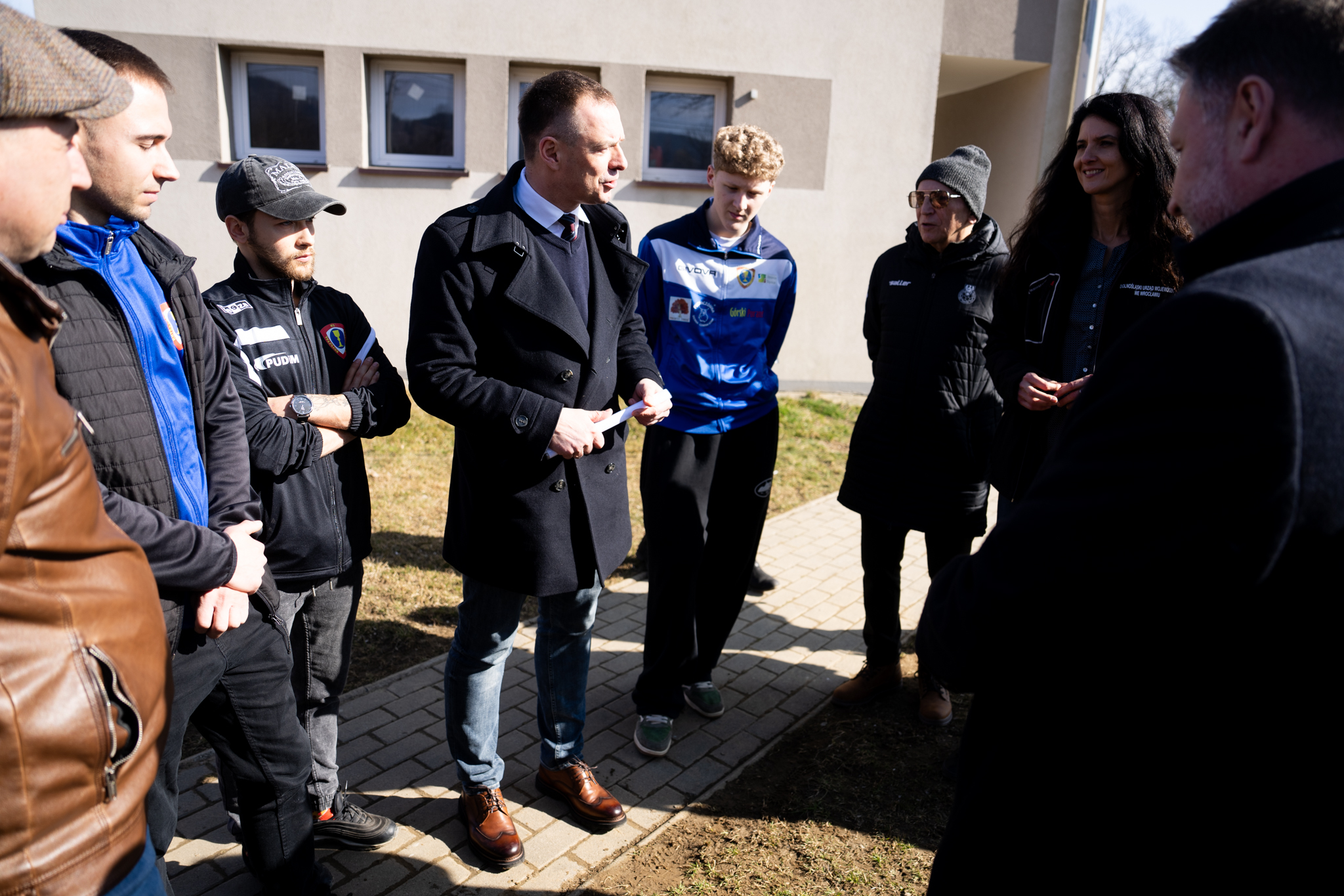 Dziś do Stronia Śląskiego przyjechali minister Piotr Borys, minister Marcin Kierwiński oraz wojewoda dolnośląska Anna Żabska, by osobiście przekazać Dariusz Chromiec Burmistrz Stronia Śląskiego decyzję i obejrzeć stadion KS „Kryształ”.