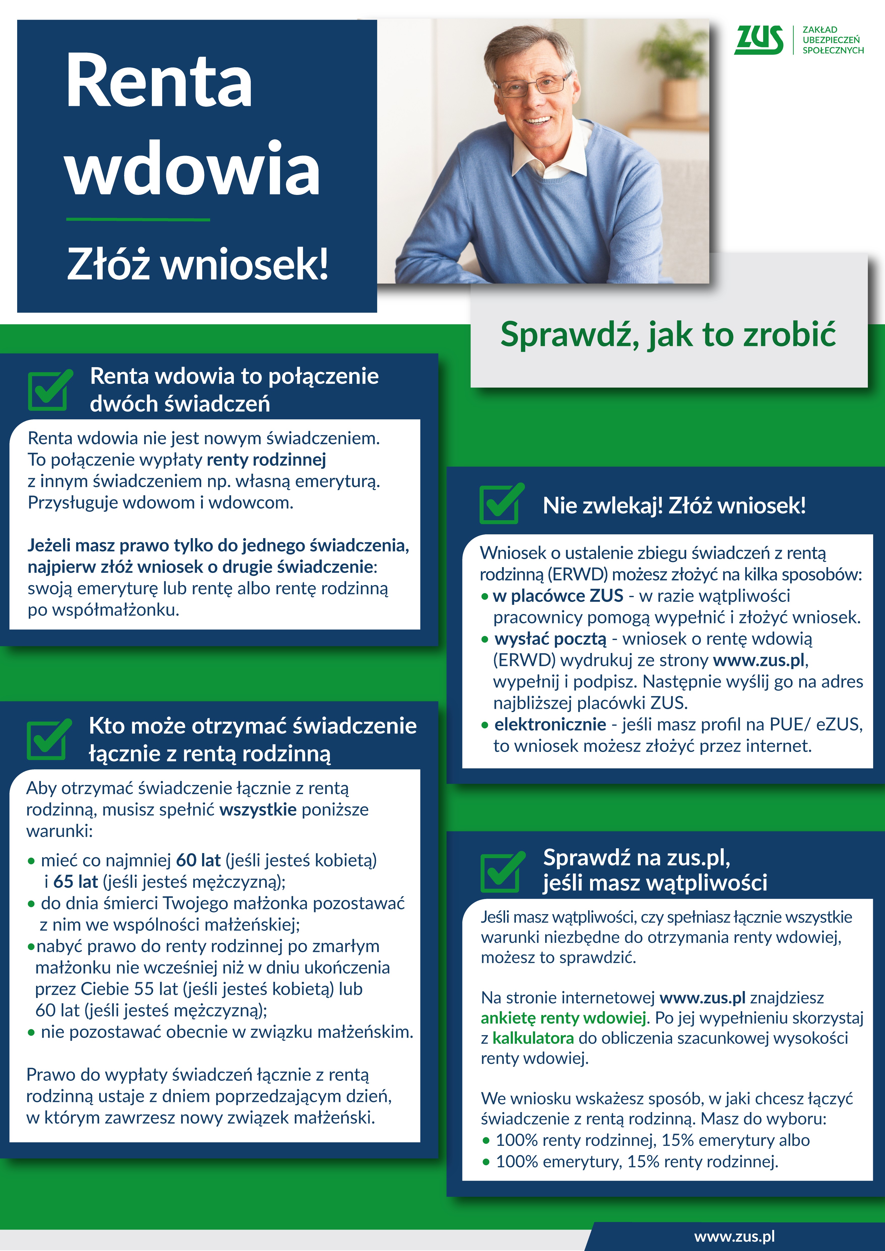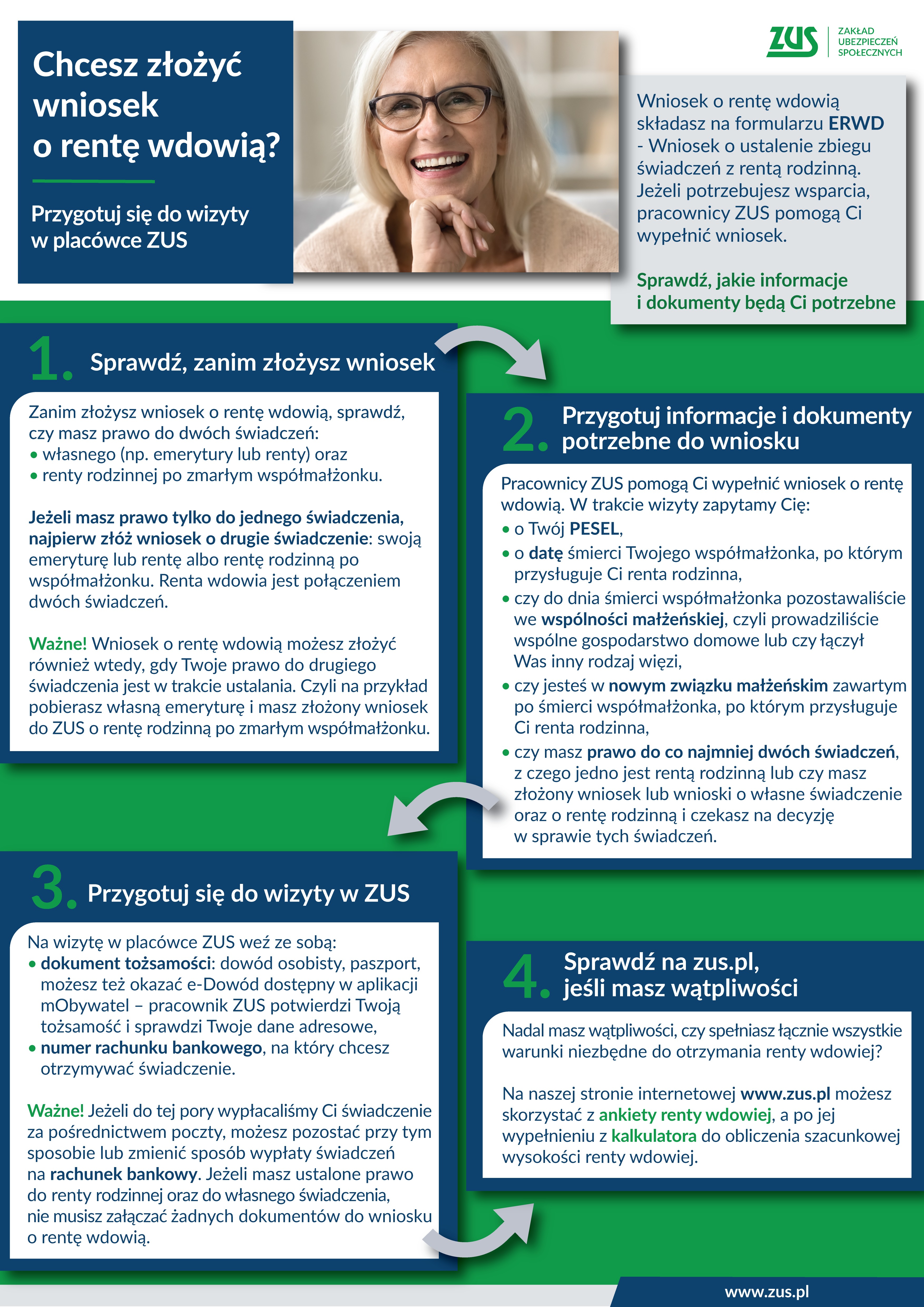 Na stronie ZUS dostępna jest ankieta, która pozwala sprawdzić uprawnienia i oszacować wysokość renty wdowiej.