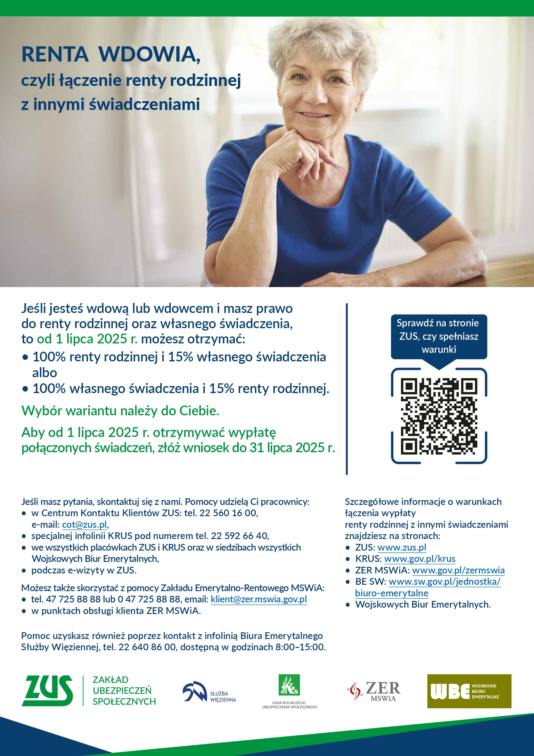 Od 1 stycznia 2025 r. obowiązują przepisy umożliwiające od 1 lipca 2025 r. łączenie renty rodzinnej z własnym świadczeniem (np. emeryturą). To rozwiązanie nazywane jest rentą wdowią.