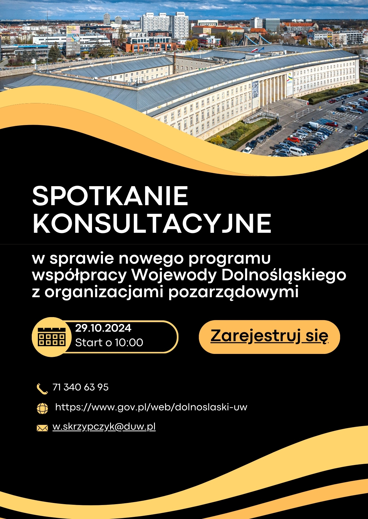 Pełnomocnik Wojewody Dolnośląskiego do Spraw Społeczeństwa Obywatelskiego i Organizacji Pozarządowych Wojciech Skrzypczyk zaprasza zainteresowane i uprawnione podmioty na pierwsze spotkanie konsultacyjne dotyczące nowego programu współpracy Wojewody Dolnośląskiego Macieja Awiżenia z organizacjami pozarządowymi.