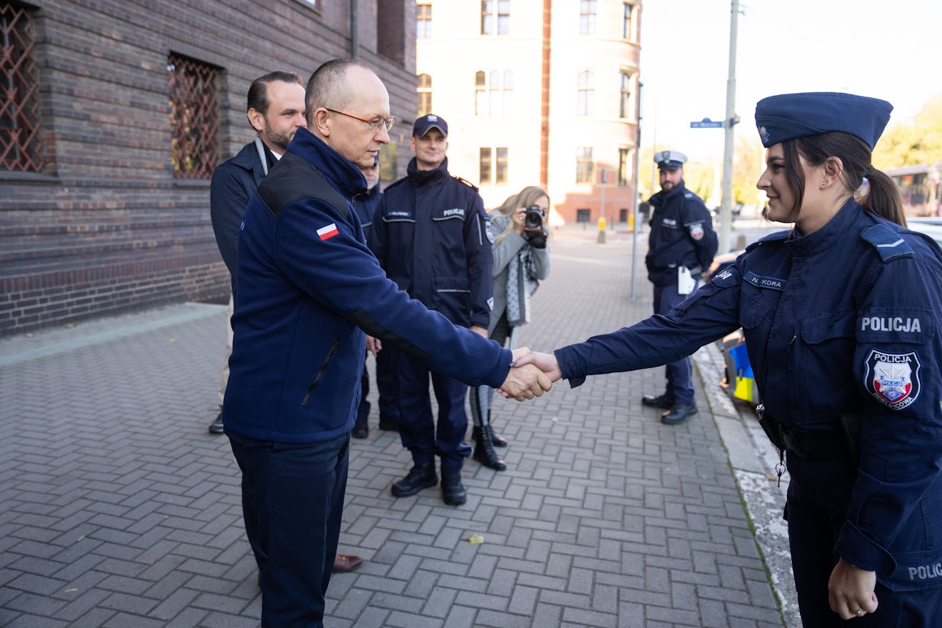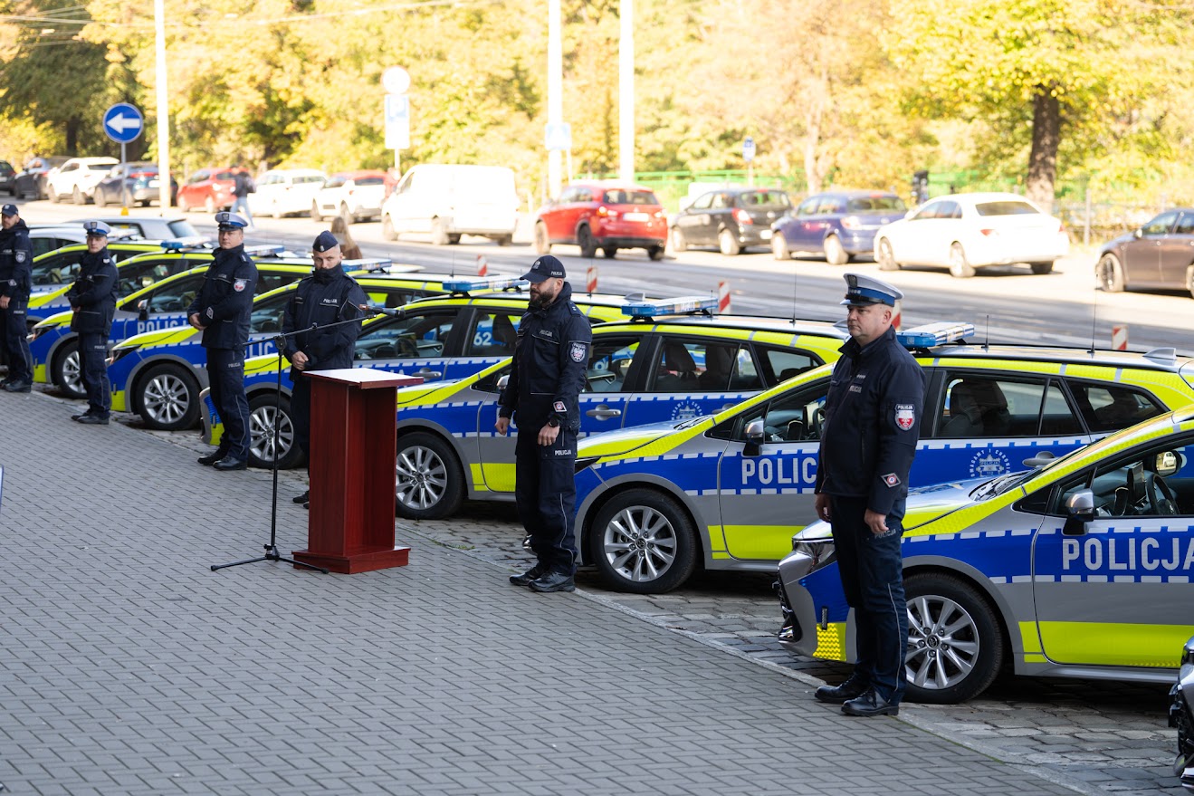 Prezydent Wrocławia Jacek Sutryk, w imieniu Wojewody Dolnośląskiego Macieja Awiżenia Dariusz Piotr Dudojć Doradca Wojewody Dolnośląskiego, oraz m.in. przedstawiciele samorządów, policji i pozostali zaproszeni goście, uczestniczyli w uroczystości przekazania w Komendzie Wojewódzkiej Policji we Wrocławiu dla Dolnośląskiego Garnizonu Policji - 12 samochodów z napędem hybrydowym o zmniejszonej emisji spalin.
