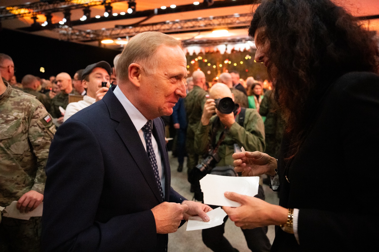 Wrocław: spotkanie opłatkowe z żołnierzami, funkcjonariuszami i pracownikami, którzy odbudowują tereny zniszczone przez powódź