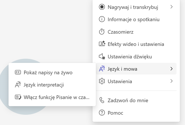 • na komputerze stacjonarnym wybierz przycisk: „Więcej”, rozwiń zakładkę: „Język i mowa”, wybierz: język tłumaczenia,
