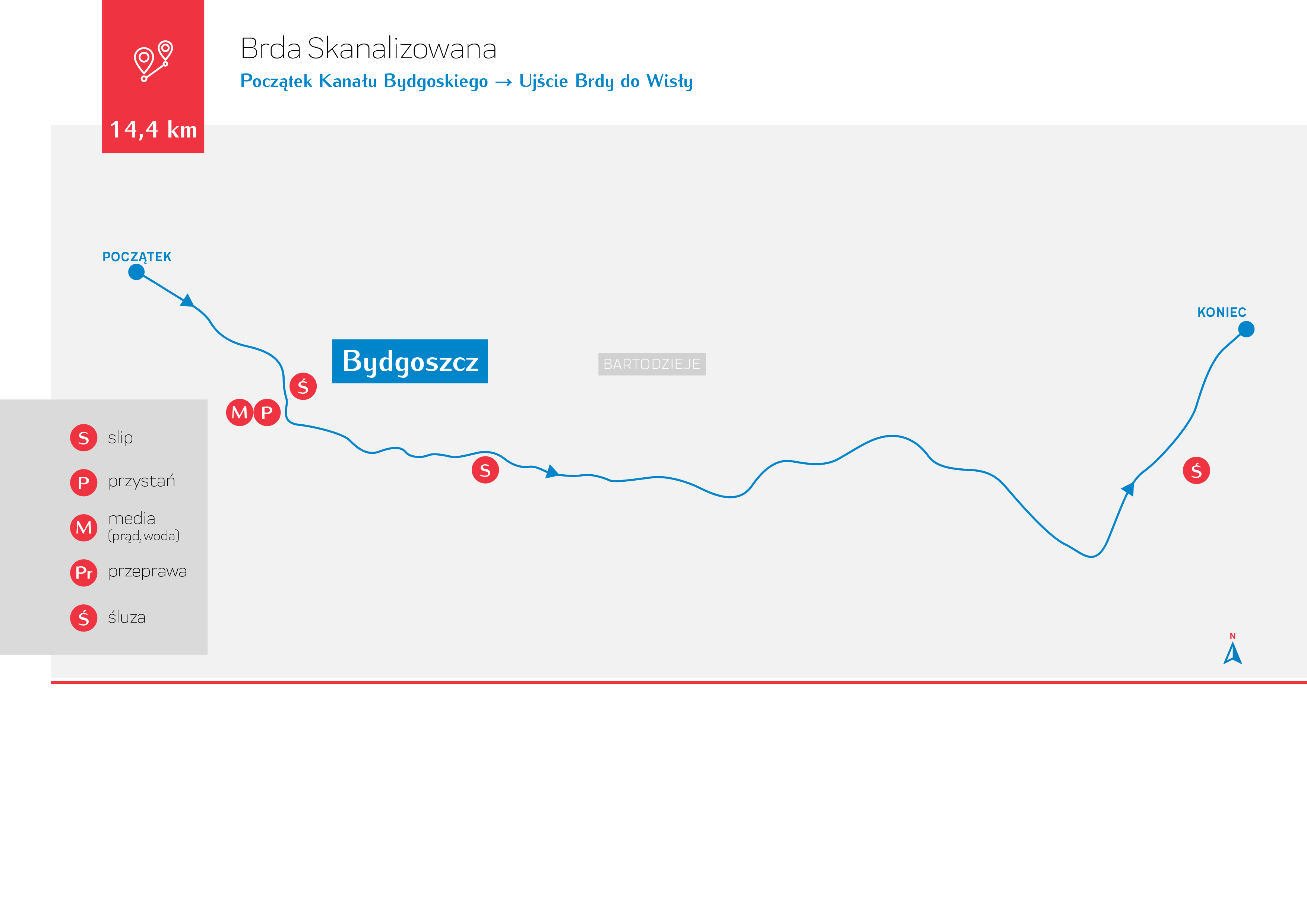 Przebieg trasy: Bydgoszcz Okole – Bydgoszcz Brdyujście (rzeka Brda skanalizowana)