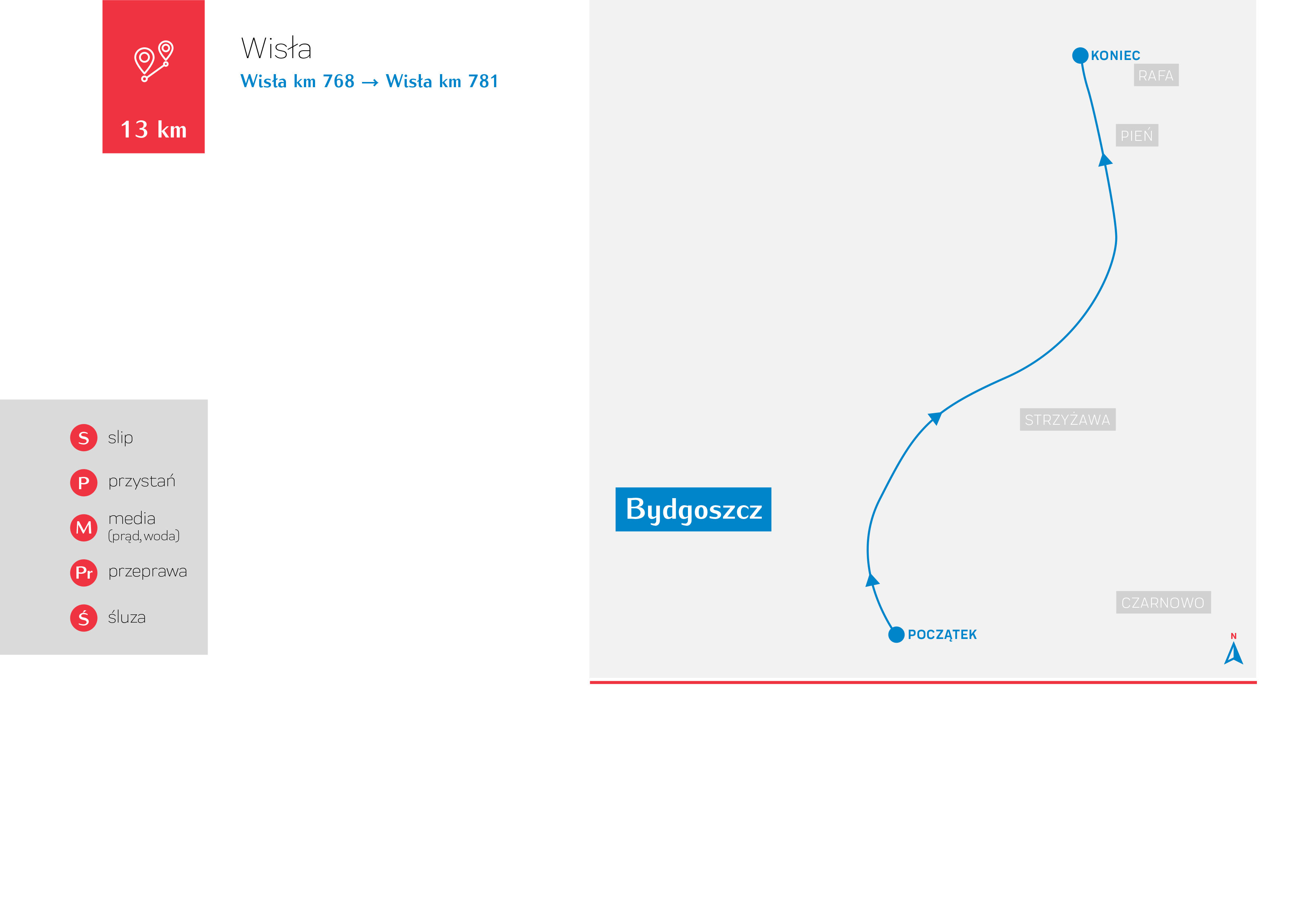 Przebieg trasy: Bydgoszcz Fordon - Rafa (rzeka Wisła)