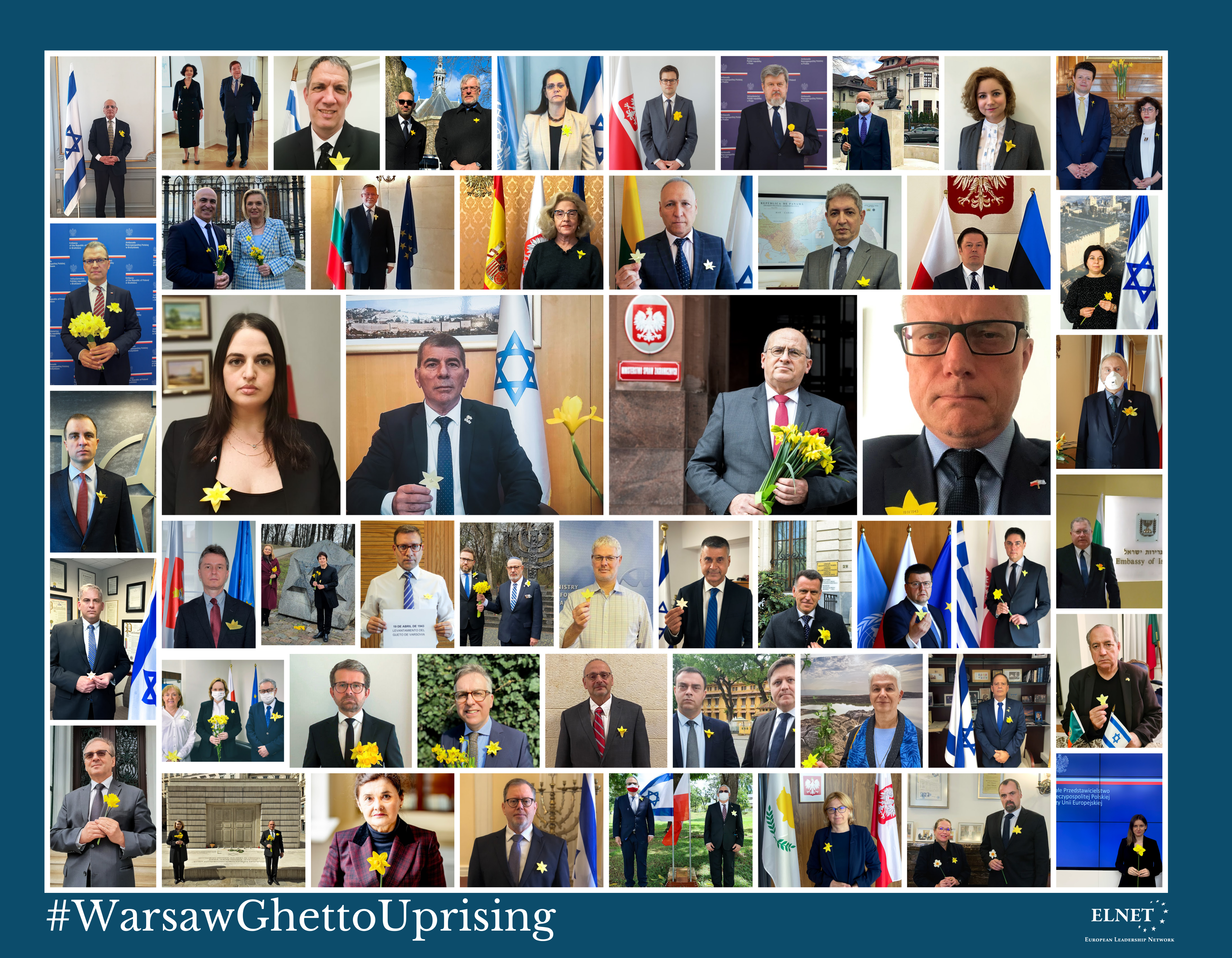Ambasadorowie upamiętnili pamięć o powstaniu fotografując się z żonkilami – kwiatami, które stały się symbolem powstańczego zrywu sprzed 78 lat. Ostatni z ocalałych przywódców powstania w getcie Marek Edelman (1919-2009), przez wiele lat otrzymywał od anonimowej osoby, właśnie w rocznicę powstania w getcie, bukiet żółtych kwiatów. Bukiet składał co roku na Pomniku Bohaterów Getta w Warszawie. Na pamiątkę tej tradycji, ale przede wszystkim po to, aby pamięć o bohaterach i bohaterkach powstania nie zaginęła, powstała „Akcja Żonkile”, którą od niemal dekady prowadzi POLIN Muzeum Historii Żydów Polskich.