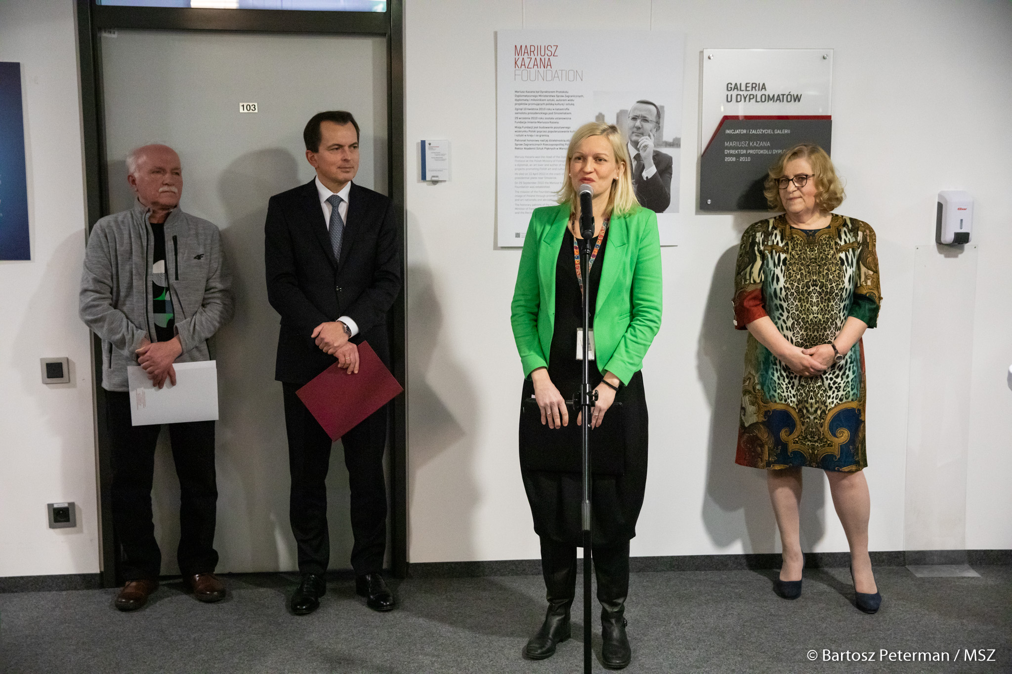 Reprezentująca Departament Dyplomacji Publicznej i Kulturalnej MSZ, naczelnik Maria Ślebioda zauważyła, że nadchodzące Święta kojarzą się z domowym ciepłem i światłem iluminacji na choinkach, a tymczasem na Ukrainie dla wielu będzie to czas chłodu i ciemności, spędzony w schronach, zamiast w domach. Przypomniała, że wernisaż wpisuje się w trwające od lutego br. intensywne działania MSZ na rzecz podtrzymania zainteresowania międzynarodowej opinii publicznej konfliktem na Ukrainie. Wskazała na zaangażowanie DDPiK w zorganizowanie odbywającej się równolegle z wernisażem wizyty studyjnej dla przedstawicieli lwowskiej ASP (prof. B. Pikulicki oraz prof. Marian Besaga), której celem jest poszerzenie polsko-ukraińskiej współpracy instytucjonalnej i akademickiej.