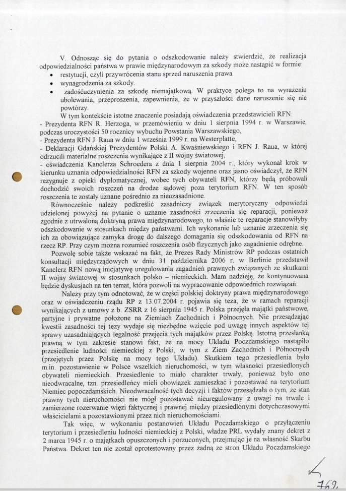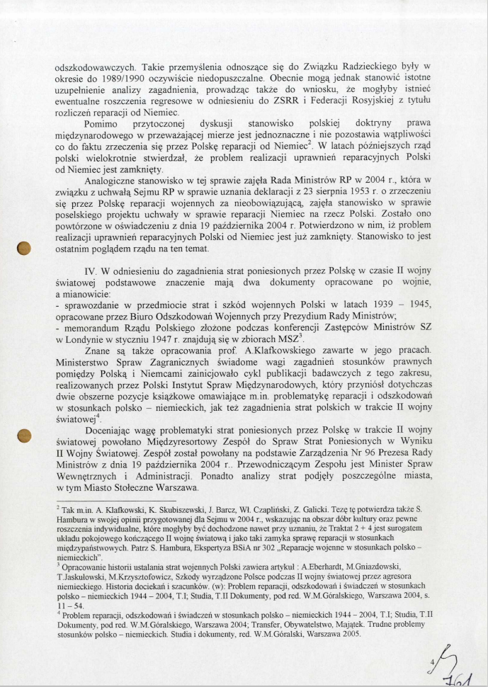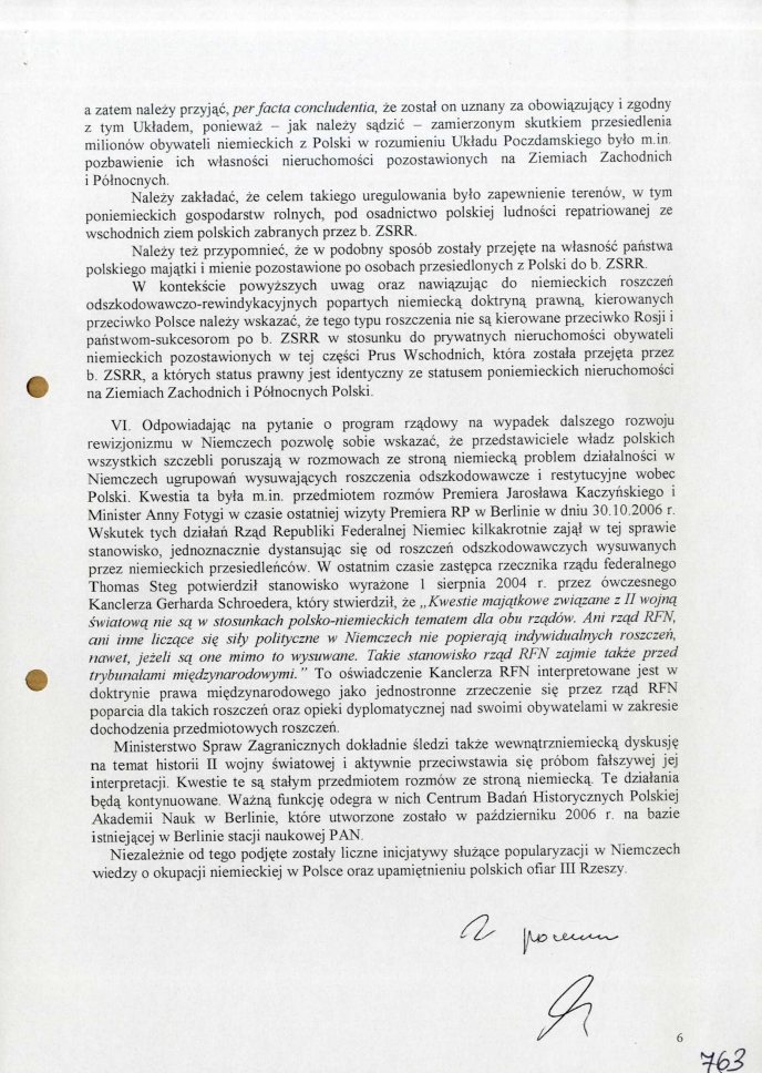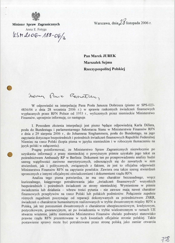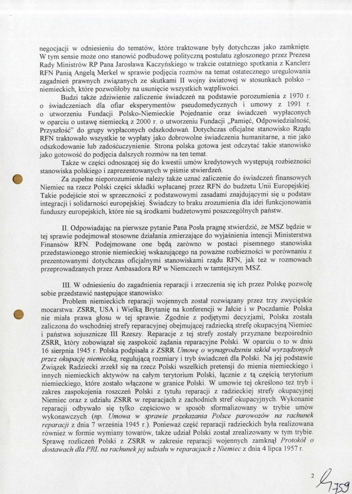 W związku z pojawiającymi się w części mediów informacjami, że minister spraw zagranicznych Radosław Sikorski zrezygnował ze starań o reparacje wojenne od Niemiec, a także pytaniami w tej sprawie ze strony Telewizji „Republika” przedstawiamy stanowisko MSZ w tej sprawie z czasów rządu koalicji Prawa i Sprawiedliwości, Samoobrony oraz Ligii Polskich Rodzin.