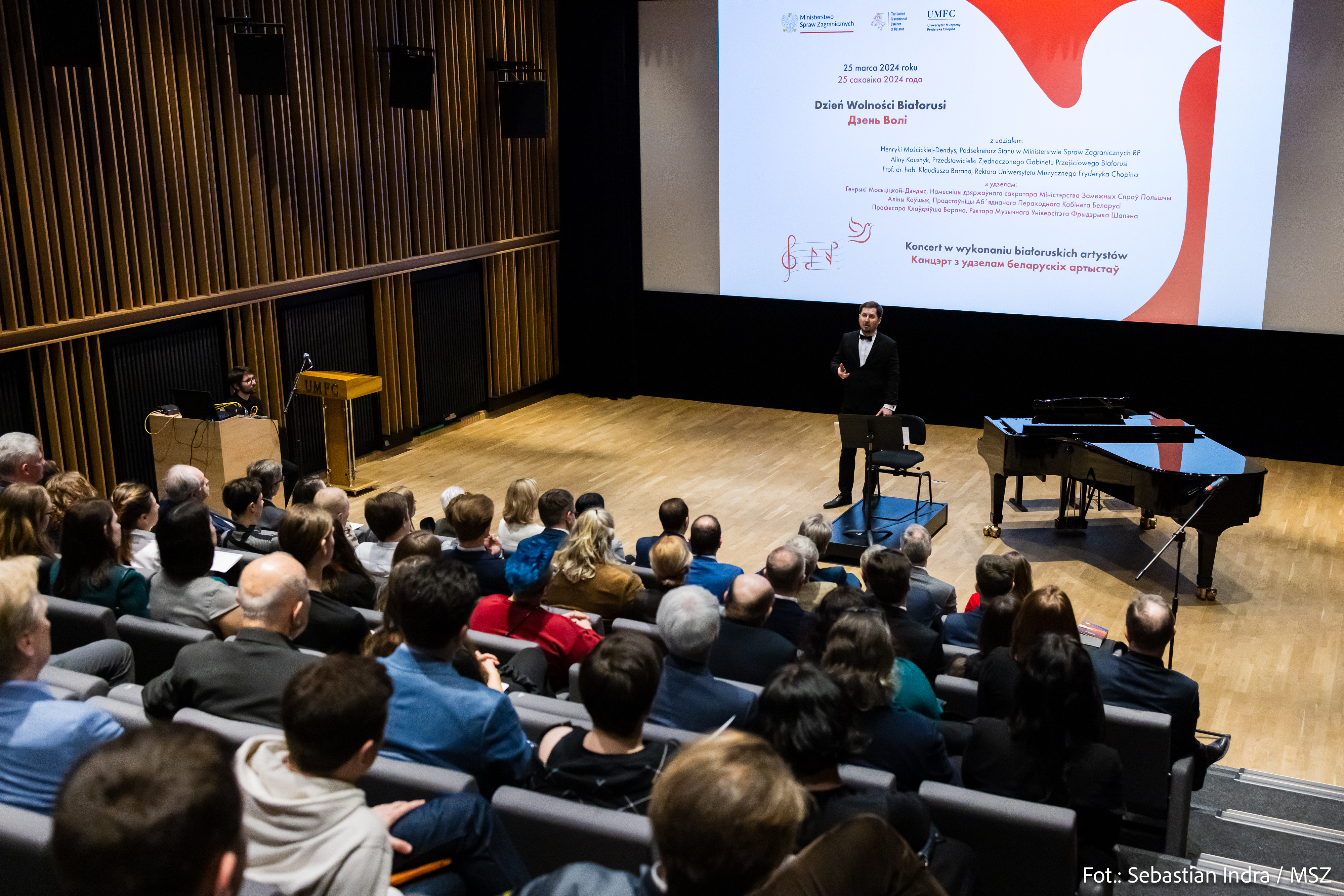 W uroczystości udział wzięła Podsekretarz Stanu w MSZ Henryka Mościcka-Dendys, przedstawicielka Zjednoczonego Gabinetu Przejściowego Białorusi ds. odrodzenia narodowego Alina Koushyk oraz rektor Uniwersytetu Muzycznego Fryderyka Chopina prof. dr hab. Klaudiusz Baran.