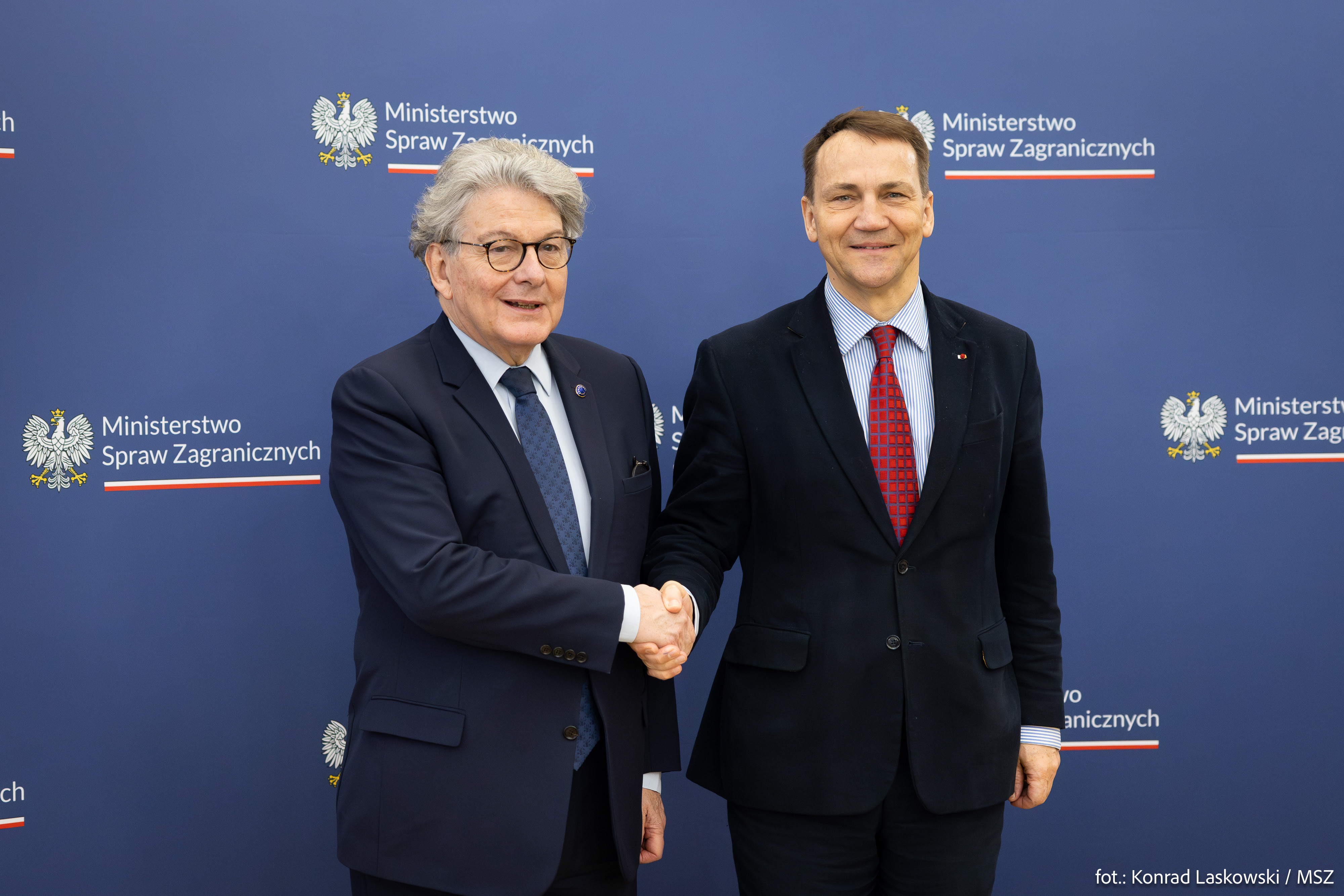 Minister Radosław Sikorski rozmawiał z unijnym komisarzem Thierry Bretonem nt. rozwoju europejskiego przemysłu zbrojeniowego