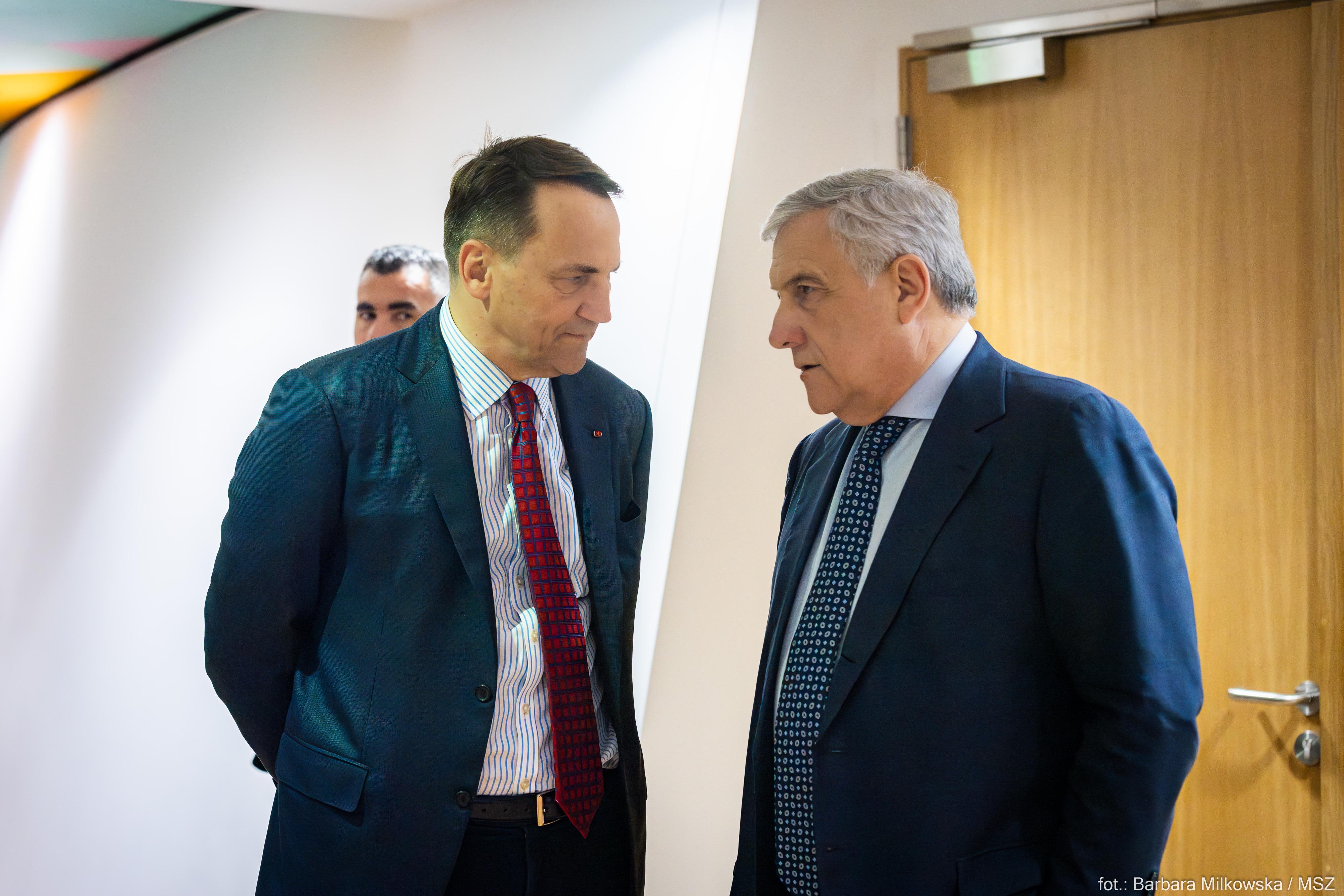W dyskusji na temat agresji Rosji wobec Ukrainy szef polskiej dyplomacji wskazał, że należy wzmocnić wsparcie militarne dla Kijowa. W tym kontekście zaapelował o jak najszybszy kompromis w kwestii operacjonalizacji finansowania dalszego wsparcia Ukrainy ze środków Europejskiego Funduszu na rzecz Pokoju. Z zadowoleniem odnotował podjęcie przez UE decyzji w sprawie wykorzystania nadzwyczajnych dochodów od zamrożonych aktywów Banku Centralnego Rosji na wsparcie Ukrainy, co jest pierwszym krokiem na drodze do wykorzystania samych aktywów. Minister Sikorski zaapelował o dalsze uszczelnianie systemu sankcyjnego wobec Rosji, pilne przyjęcie 14. pakietu sankcji wobec Rosji i harmonizację sankcji sektorowych wobec Białorusi z tymi wobec Rosji. Podkreślił, że priorytetem powinno być rozpoczęcie w najbliższych tygodniach negocjacji akcesyjnych z Ukrainą. Wskazał ponadto na rosnącą skalę ataków hybrydowych Rosji w państwach UE, w tym w Polsce, w reakcji na którą polskie władze podjęły decyzję o ograniczeniu swobody przemieszczania się rosyjskich dyplomatów na terytorium naszego kraju.