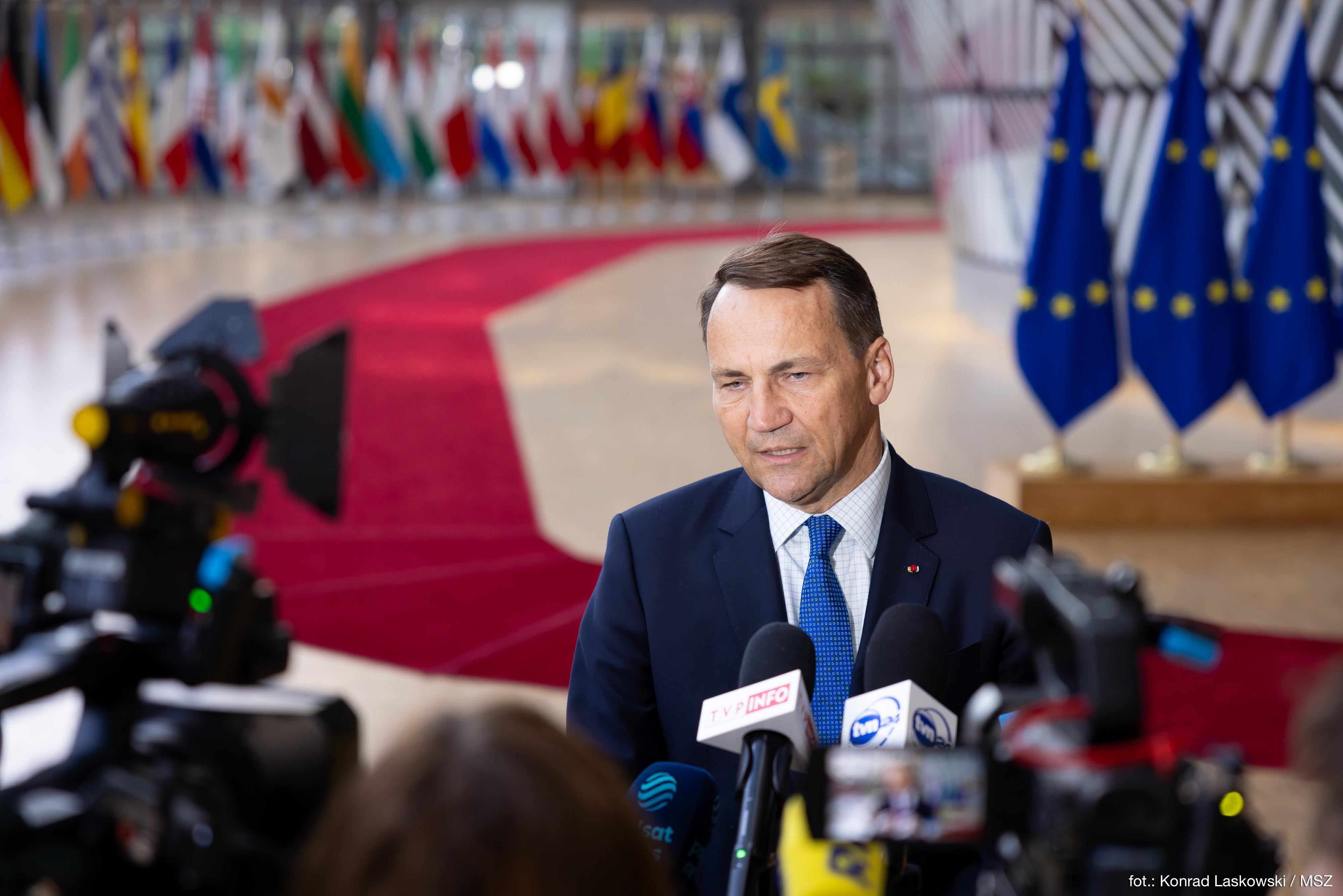 Minister Radosław Sikorski podkreślił konieczność kontynuowania dostaw sprzętu wojskowego dla Ukrainy oraz zniesienia ograniczeń w jego wykorzystaniu. Zwrócił uwagę, że trwające transfery systemów obrony powietrznej stwarzają w tym obszarze strategiczną różnicę a trwały charakter wsparcia ma decydujące znaczenie dla ukraińskich wysiłków na rzecz utrzymania pozycji na froncie. Szef polskiej dyplomacji wyraził także zadowolenie z ustaleń podjętych na szczycie NATO w tej sprawie. Podkreślił także kluczowe znaczenie zapewnienia dostaw energii dla Ukrainy, gdyż jej brak skutkował będzie katastrofą humanitarną i kolejną falą ukraińskich uchodźców. Wskazał ponadto, że wszelkie inicjatywy pokojowe muszą być prowadzone w ścisłej konsultacji z Ukrainą. Polska jest przeciwna wszelkim próbom stworzenia wrażenia, że UE poważnie traktuje „propozycje pokojowe” Rosji. Minister Sikorski podkreślił, że siła UE leży w jedności, przestrzeganiu zasad prawa międzynarodowego i gotowości do ich obrony.