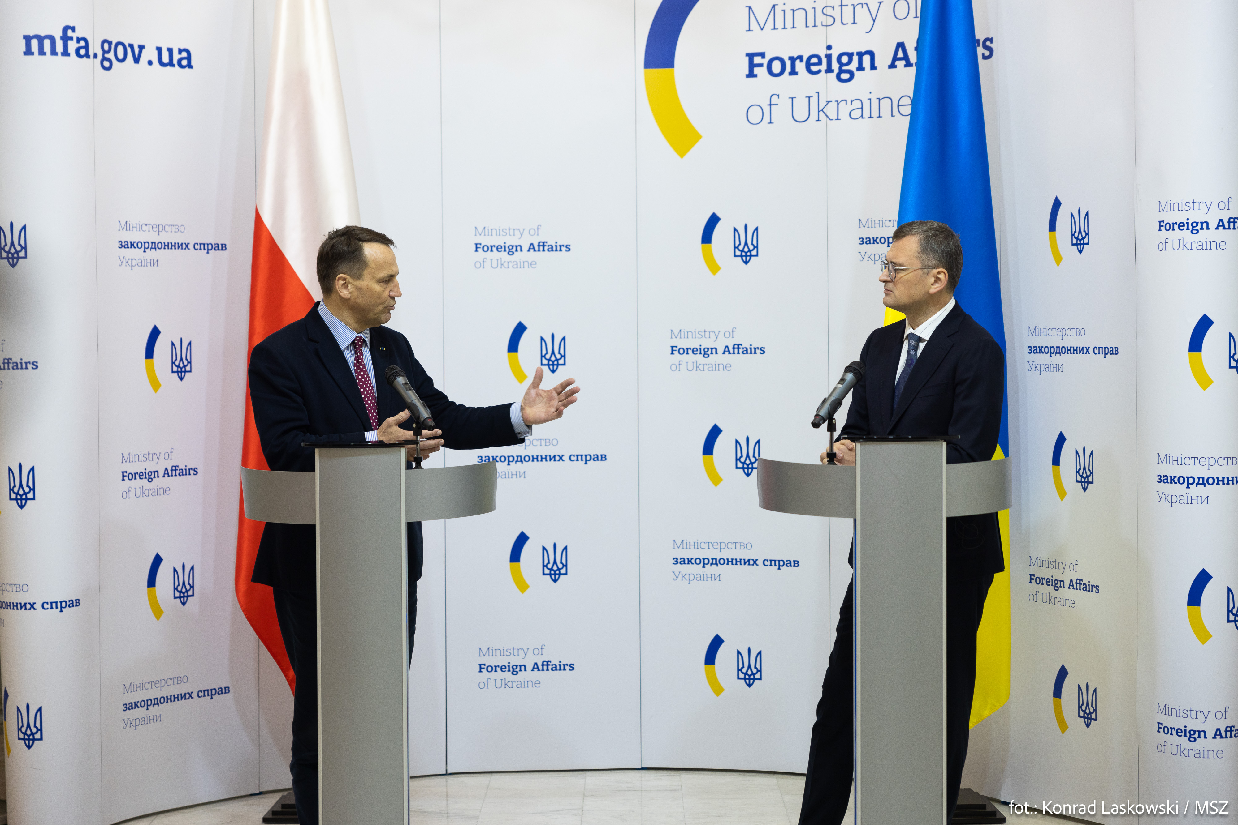 Podczas konferencji prasowej po spotkaniu z szefem ukraińskiej dyplomacji minister Sikorski podkreślił bohaterstwo mieszkańców Ukrainy, dodając, że są inspiracją dla całej Europy. Dmytro Kułeba zaznaczyl z kolei, że przyjaźń z Polską pomoże pokonać Rosję i zjednoczyć Europę.