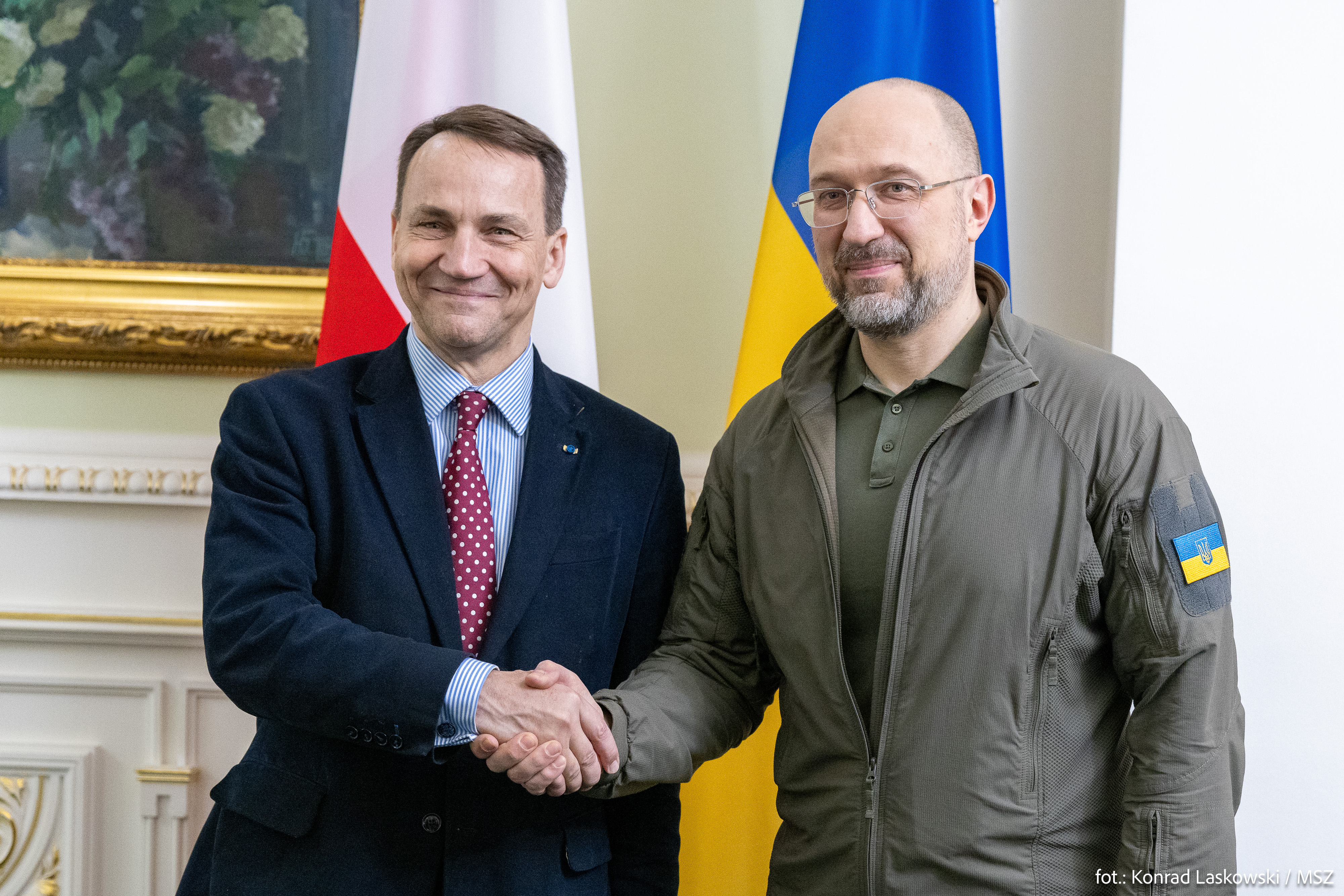 Do Ukrainy udał się z pierwszą wizytą minister spraw zagranicznych Radosław Sikorski. W rozmowie z prezydentem Wołodymyrem Zełeńskim wyraził wolę silnego wsparcia Ukrainy oraz przedstawił nowe propozycje współpracy bilateralnej. – Czekaliśmy na ciebie Radku w Kijowie – przywitał go szef dyplomacji Ukrainy Dymytro Kułeba. Sikorski podkreślił, że wspólnym celem Ukrainy i Polski jest przegrana Rosji na Ukrainie.
