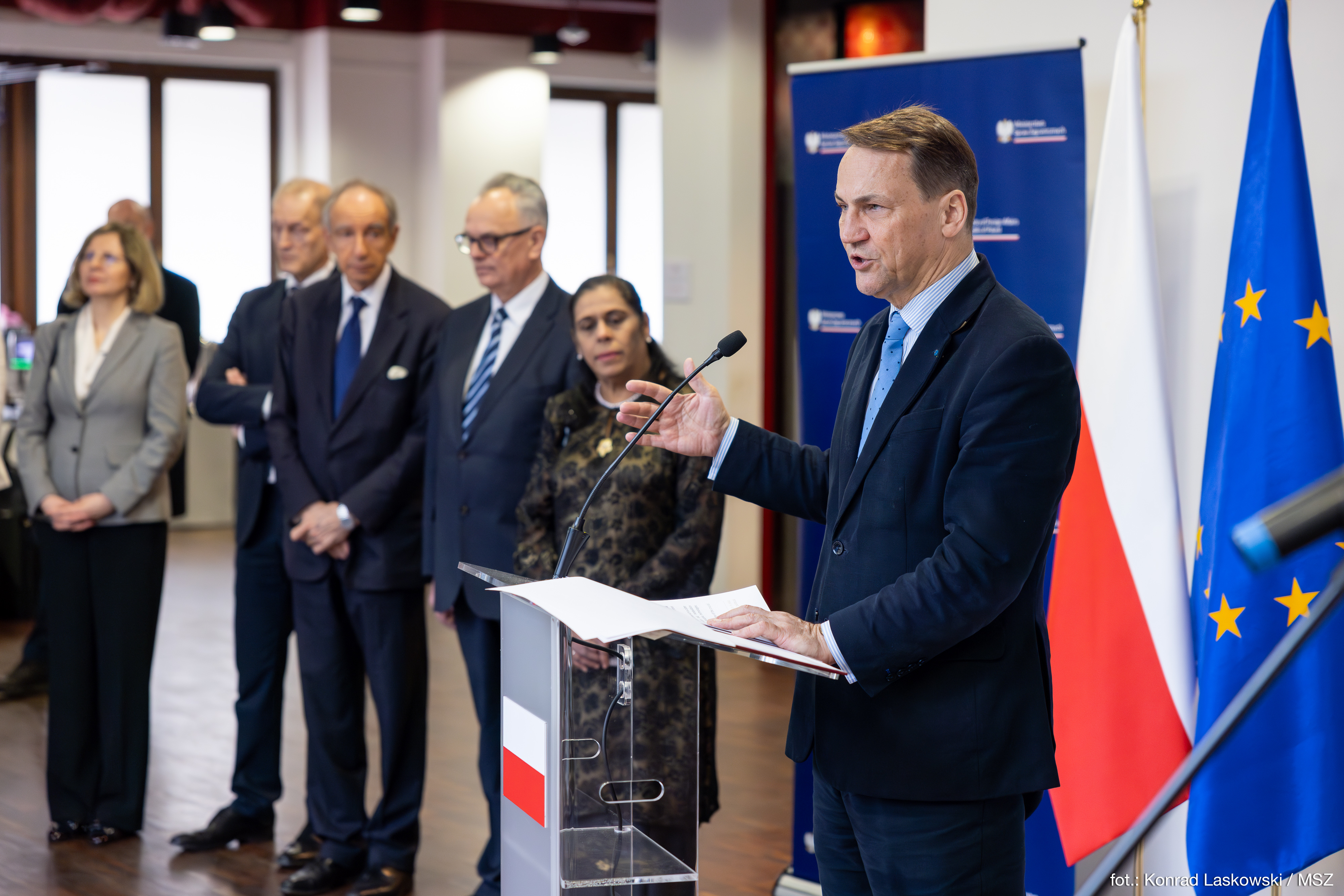 Minister Radosław Sikorski spotkał się dzisiaj z przedstawicielami korpusu dyplomatycznego państw Azji i Pacyfiku akredytowanymi w Polsce.