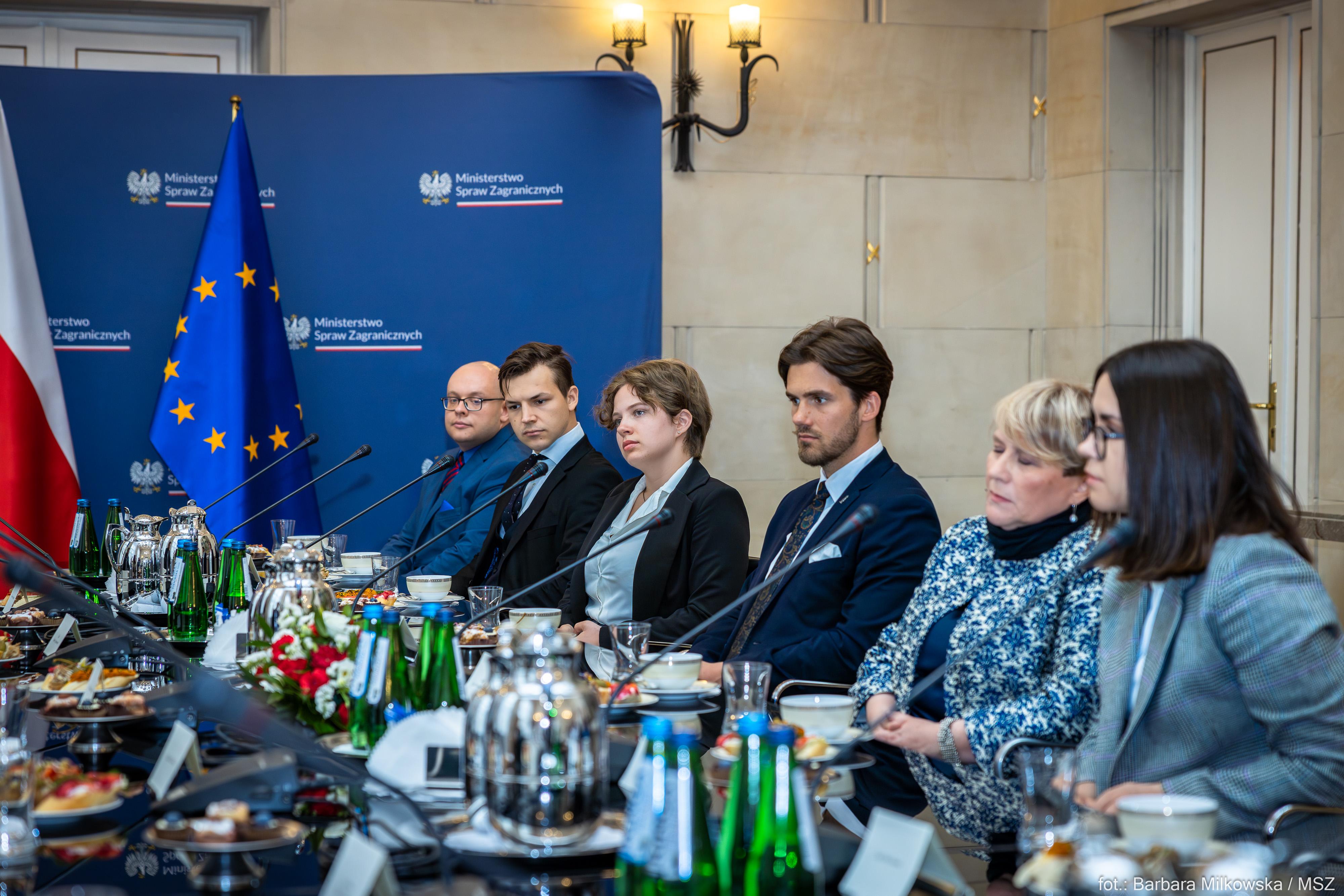 Szef polskiej dyplomacji spotkał się dzisiaj z obywatelami Ukrainy, którzy dzięki wsparciu Ministerstwa Spraw Zagranicznych RP studiują w tym roku w Kolegium Europejskim w Natolinie. W czerwcu br. kończą roczny program interdyscyplinarnych studiów europeistycznych.