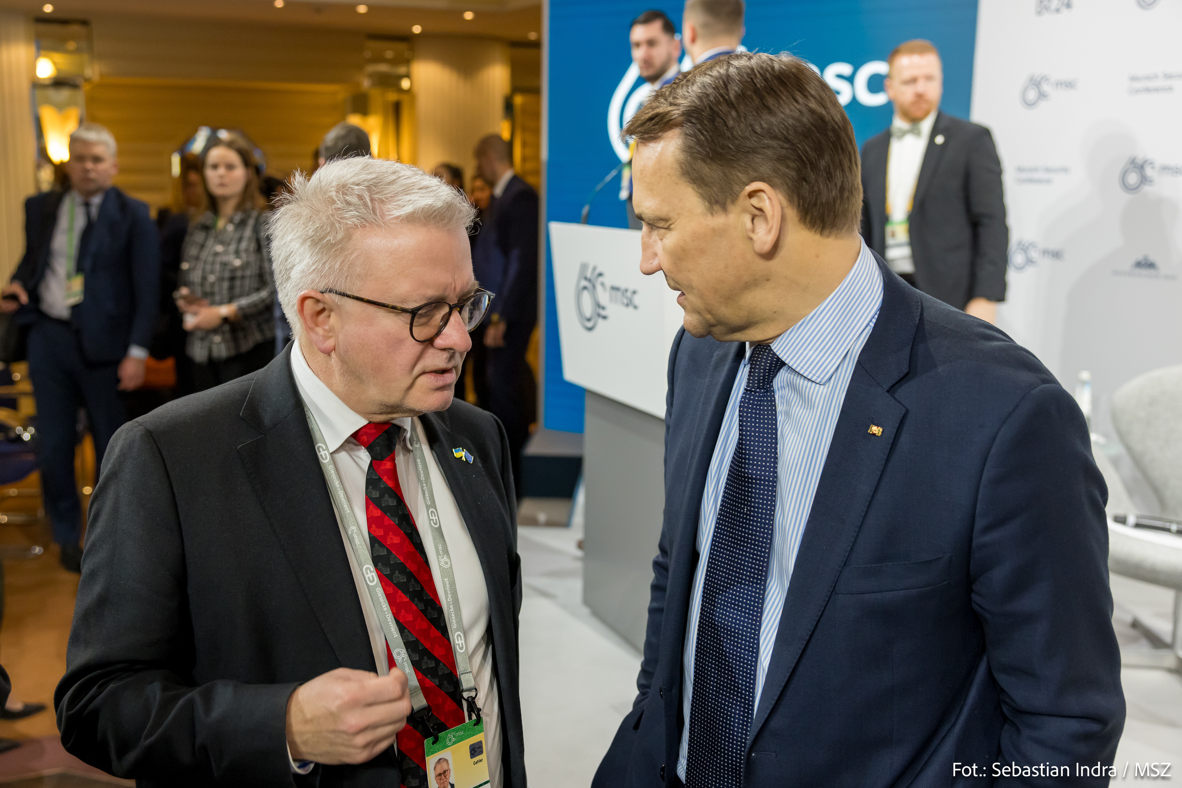 W Monachium szef polskiej dyplomacji zabrał również głos podczas dyskusji panelowej „Adding Chairs to the Table: A Deeper, Wider, and More Capable EU?”, na której obecna była m.in. wicepremier Ukrainy Olha Stefaniszyna. Minister Sikorski podkreślił, że problem ukraińskiego zboża i przewoźników musi być rozwiązany, by nie przysłonił on ogólnego obrazu polskiej solidarności z Kijowem. – Polska jest w czołówce krajów pomagających Ukrainie, ale rolnicy i przewoźnicy to dwie grupy, które „płacą najbardziej bezpośrednią cenę” za europejską solidarność – ocenił. Już w bezpośredniej rozmowie z ukraińską polityk minister Sikorski omówił ponadto kwestie dwustronne, potrzeby armii Ukrainy i oczekiwania tego kraju wobec nadchodzącego szczytu NATO w Waszyngtonie.