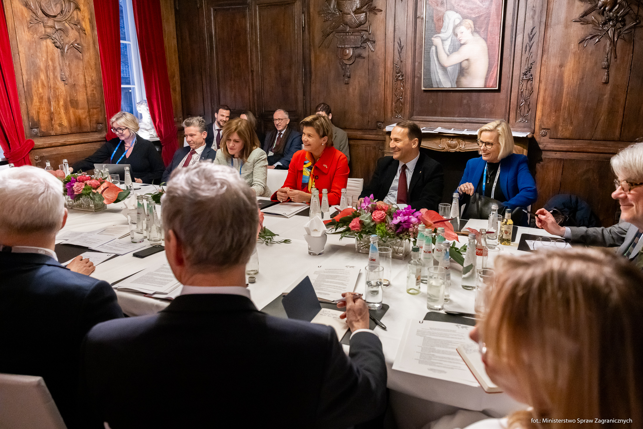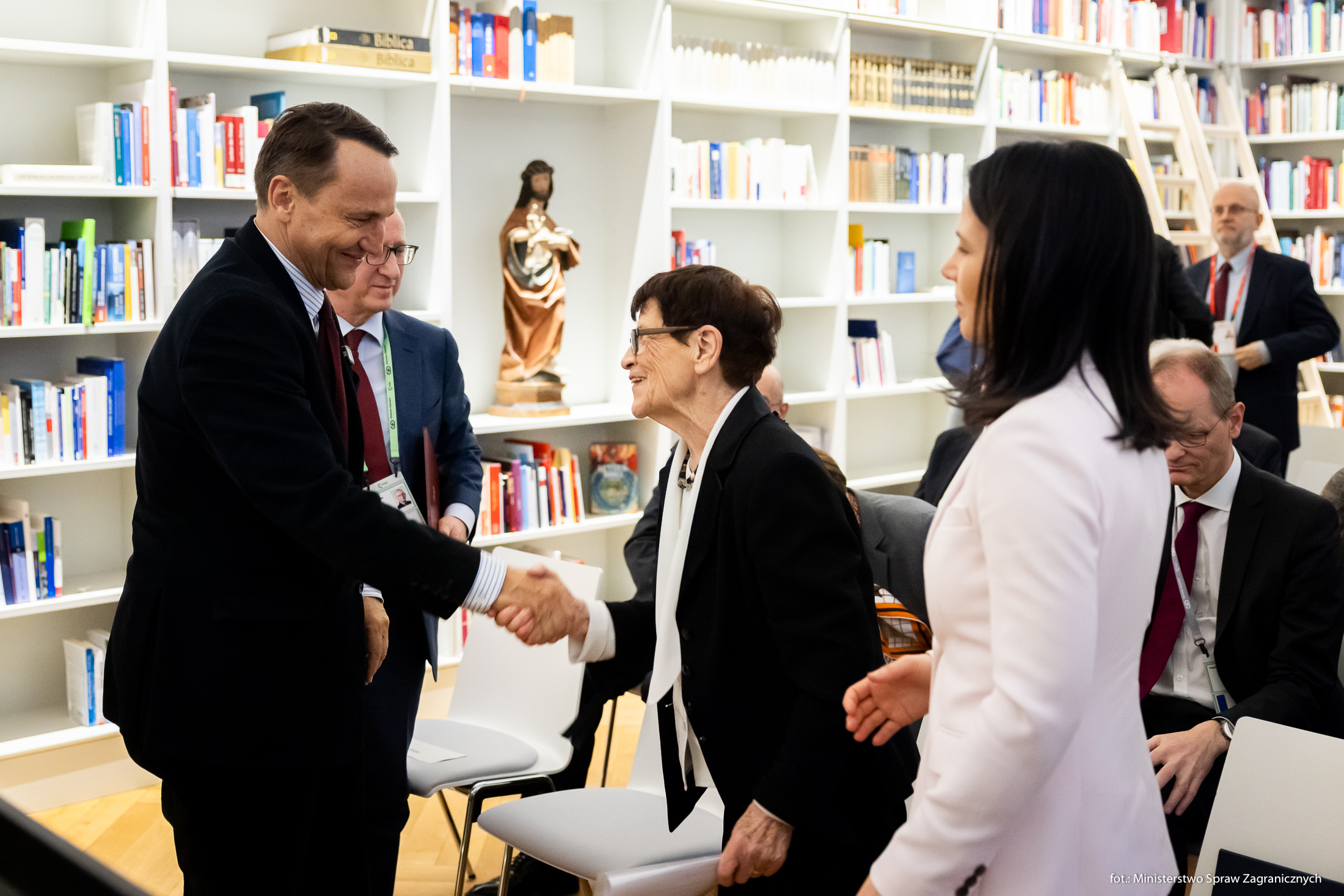 Minister Sikorski spotkał się ponadto z wicepremierem i ministrem spraw zagranicznych Mołdawii, Mihaiem Popșoiem, a także ze swoim odpowiednikiem z Egiptu, Badrem Abdelatty. Omówiono szereg spraw z zakresu strategicznych relacji z Unią Europejską oraz bieżącą sytuację w Strefie Gazy i w Ukrainie. Okazją do otwartej dyskusji nad globalnymi problemami bezpieczeństwa były również pozostałe wydarzenia towarzyszące, w których wziął udział minister: dyskusja „The New Geopolitics: The World to Come” oraz ceremonia „John McCain Dissertation Award”, honorująca osiągnięcia naukowe w dziedzinie stosunków transatlantyckich. Minister Sikorski spotkał się także z Dyrektorem Wykonawczym Amerykańskiego Komitetu Żydowskiego, Tedem Deutchem. Ponadto na marginesie tegorocznej konferencji szefowie dyplomacji Polski i Niemiec – Radosław Sikorski i Annalena Baerbock – wręczyli Nagrodę Specjalną prof. Ricie Süssmuth w uznaniu całokształtu jej działalności na rzecz partnerskich stosunków polsko-niemieckich.