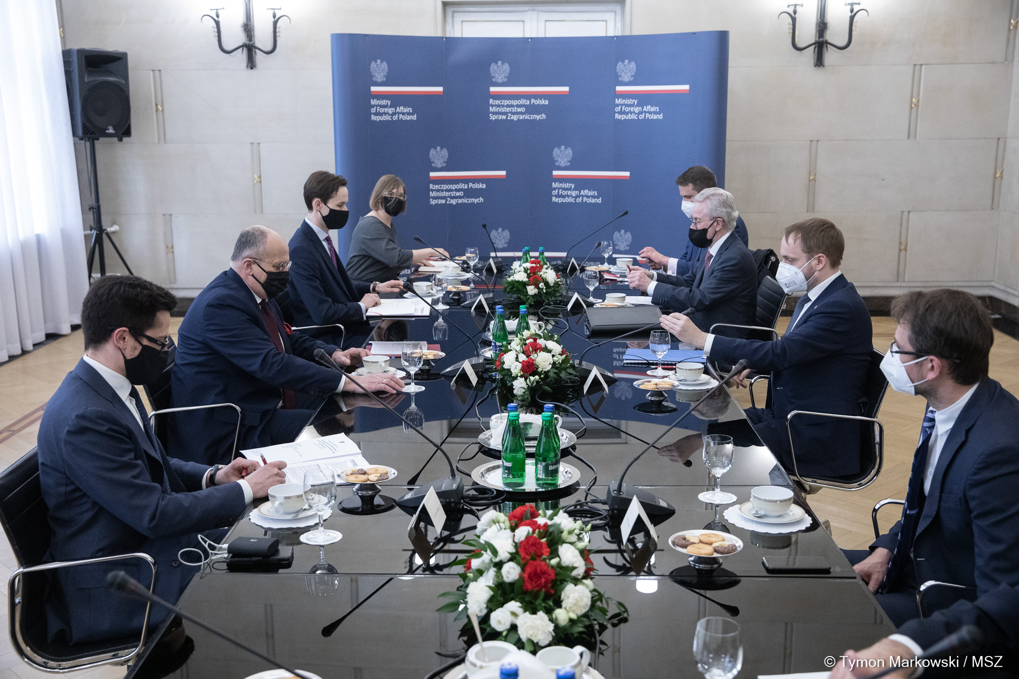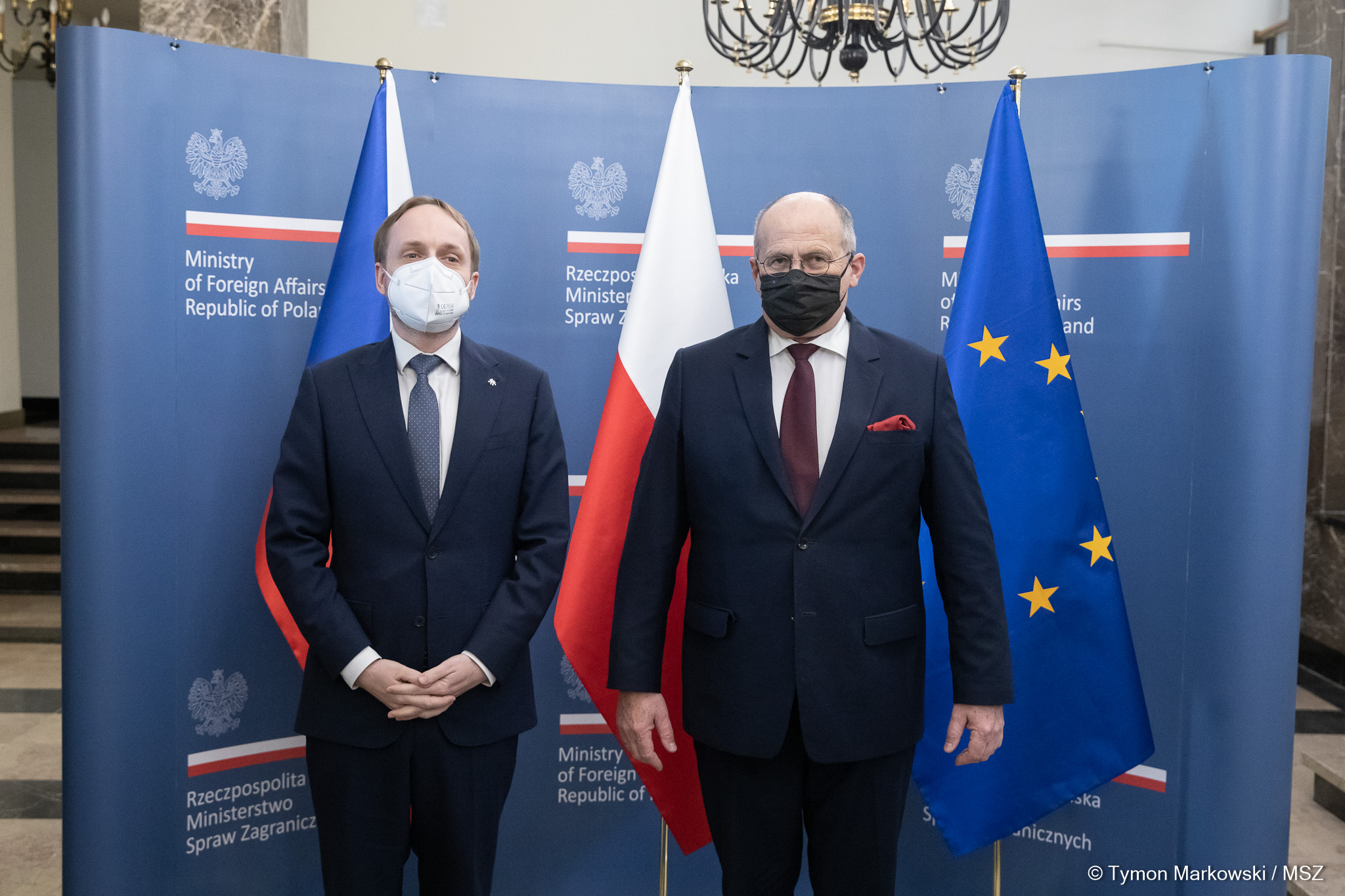 - Częstotliwość naszych kontaktów potwierdza pozytywną dynamikę relacji dwustronnych Polski i Czech, ale także efektywność naszej współpracy na płaszczyźnie regionalnej oraz międzynarodowej. Jako bliscy partnerzy i sąsiedzi potrafimy prowadzić konstruktywny dialog także na tematy trudne w relacjach bilateralnych takich jak wzajemny status nieruchomości dyplomatycznych czy KWB Turów - stwierdził minister Zbigniew Rau podczas dwustronnych rozmów z ministrem spraw zagranicznych Czech Jakubem Kulhánkiem.