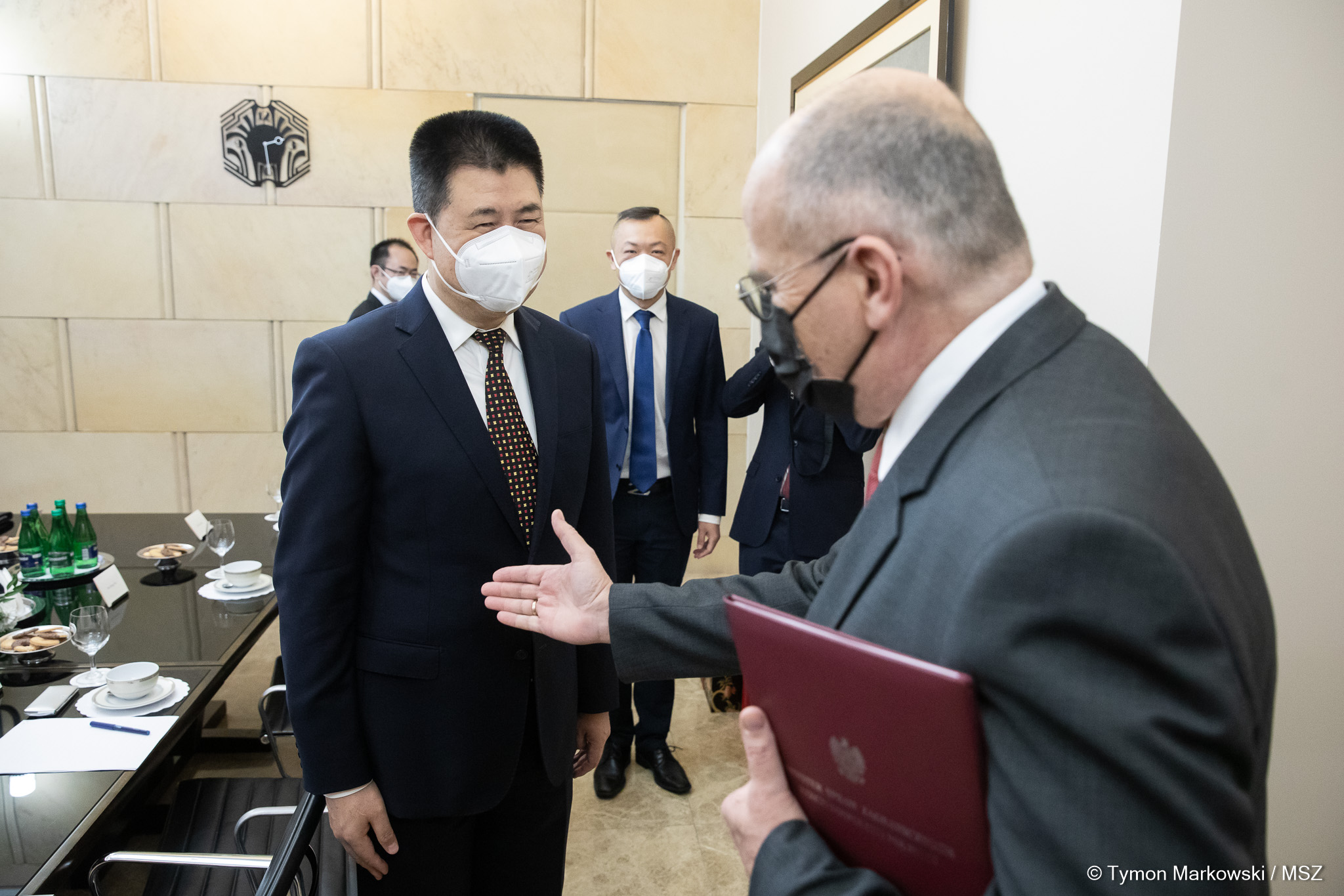 Minister Zbigniew Rau przyjął rozpoczynającego urzędowanie w Polsce Ambasadora ChRL Sun Linjiang