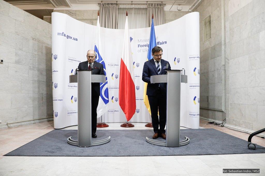 Szef polskiej dyplomacji rozpoczął wizytę na Ukrainie od złożenia kwiatów pod Ścianą Pamięci Żołnierzy Poległych za Ukrainę. Następnie rozmawiał z ministrem spraw zagranicznych Ukrainy Dmytro Kułebą.