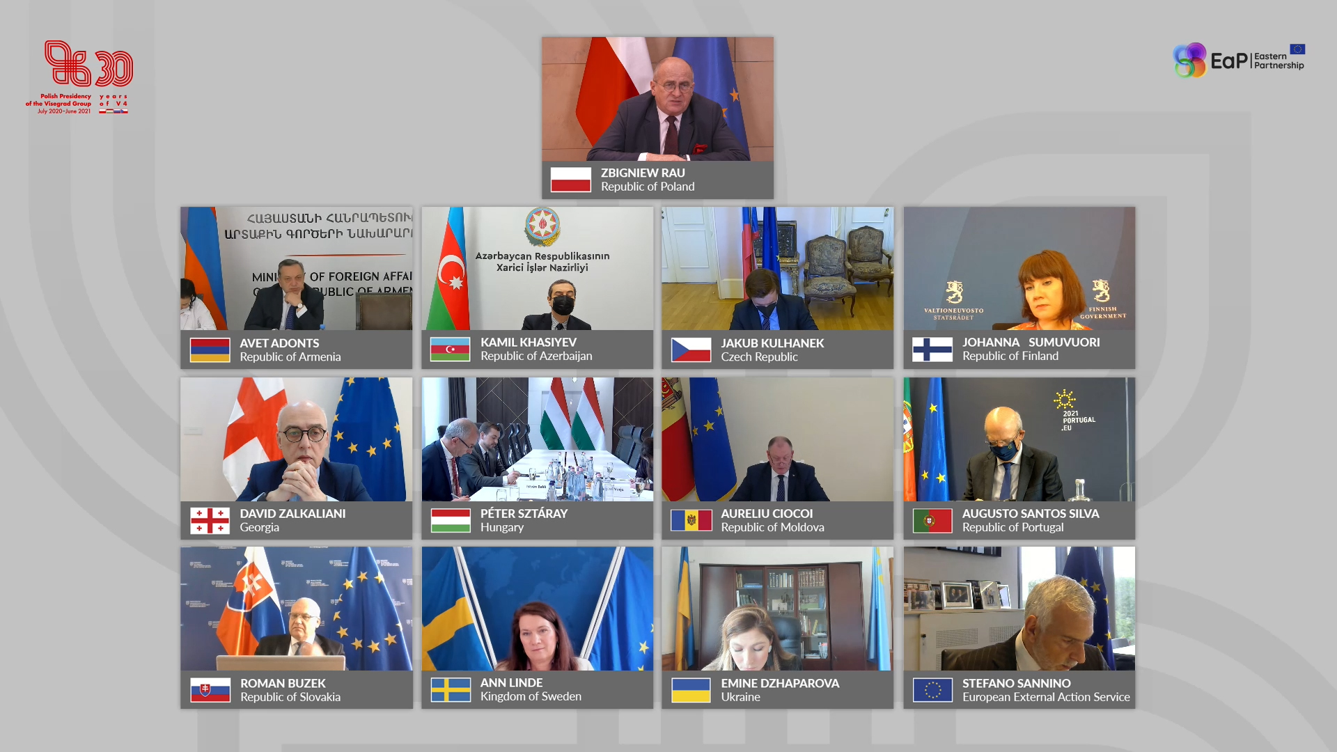 Podczas wideokonferencji Ministrowie Grupy Wyszehradzkiej przyjęli wspólne oświadczenie, poświęcone przyszłości Partnerstwa Wschodniego, w którym podkreślili, że polityka UE wobec wschodnich partnerów musi być wiarygodna, dynamiczna i atrakcyjna. Powinna odzwierciedlać wspólne wartości, stanowiące fundament PW. Ministrowie zadeklarowali wolę utrzymania wsparcia i dalszego rozwoju Partnerstwa Wschodniego po 2020 roku.
