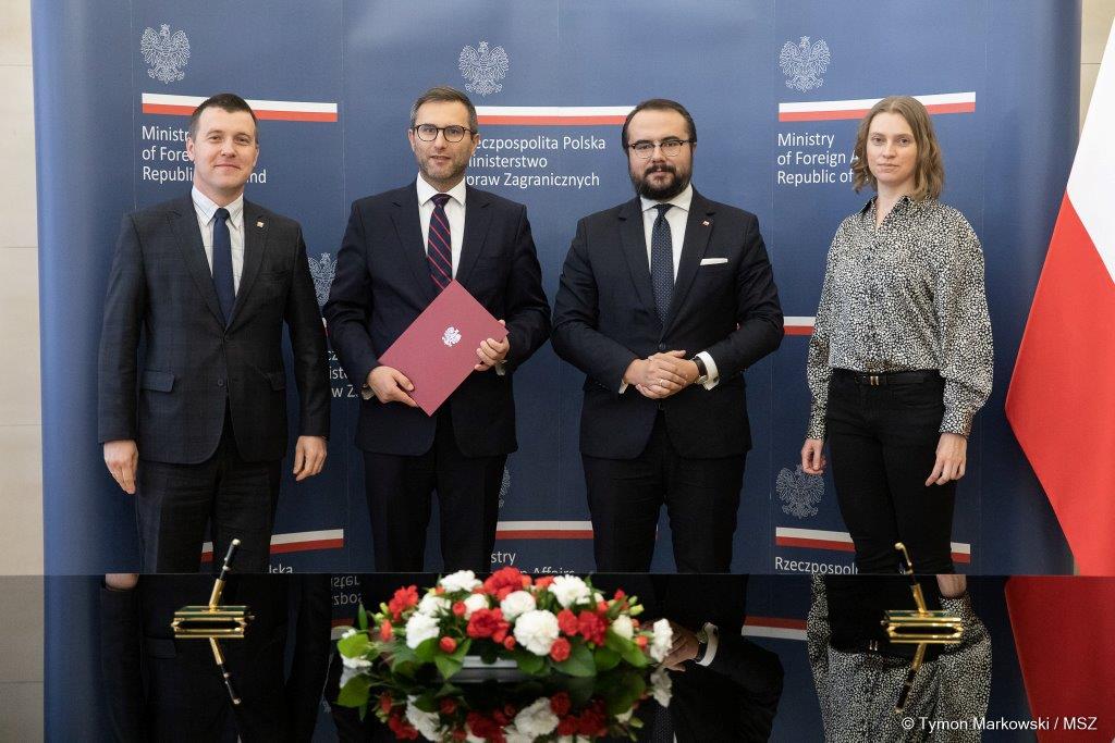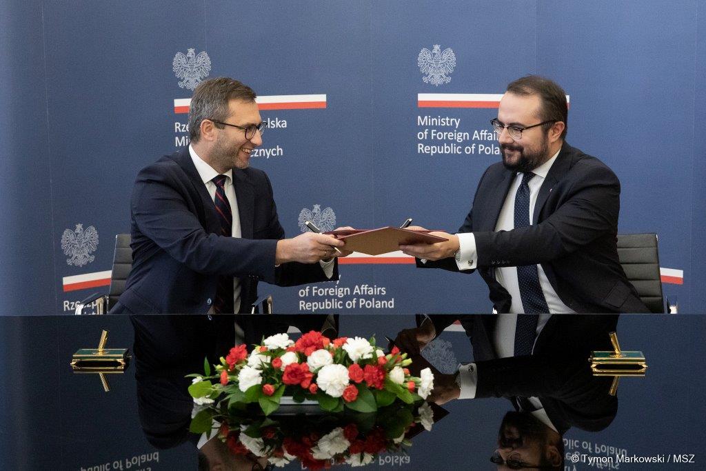 – Zawarte dzisiaj porozumienie pozwoli nam w większym stopniu wykorzystać synergię pomiędzy działaniami naszych instytucji, z jednej strony – we wspieraniu promocji polskiej gospodarki i polskich przedsiębiorstw na rynkach zagranicznych oraz zaangażowaniu we współpracę rozwojową, a z drugiej – w zarządzaniu rezerwami strategicznymi – podkreślił wiceminister Jabłoński w trakcie ceremonii podpisania Porozumienia w sprawie współpracy pomiędzy Ministrem Spraw Zagranicznych a Rządową Agencją Rezerw Strategicznych (RARS). Ze strony RARS porozumienie podpisał Prezes Agencji Michał Kuczmierowski.