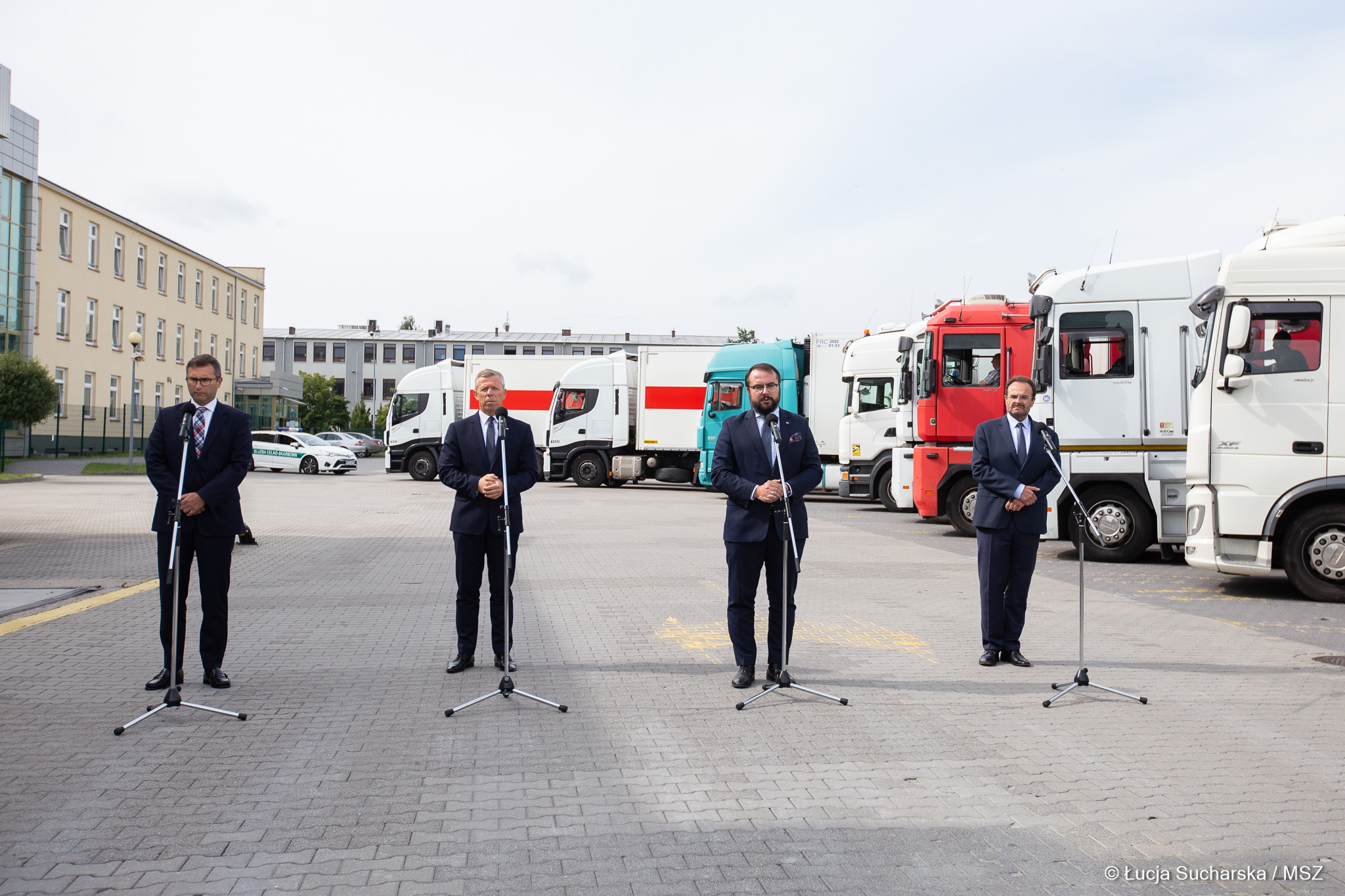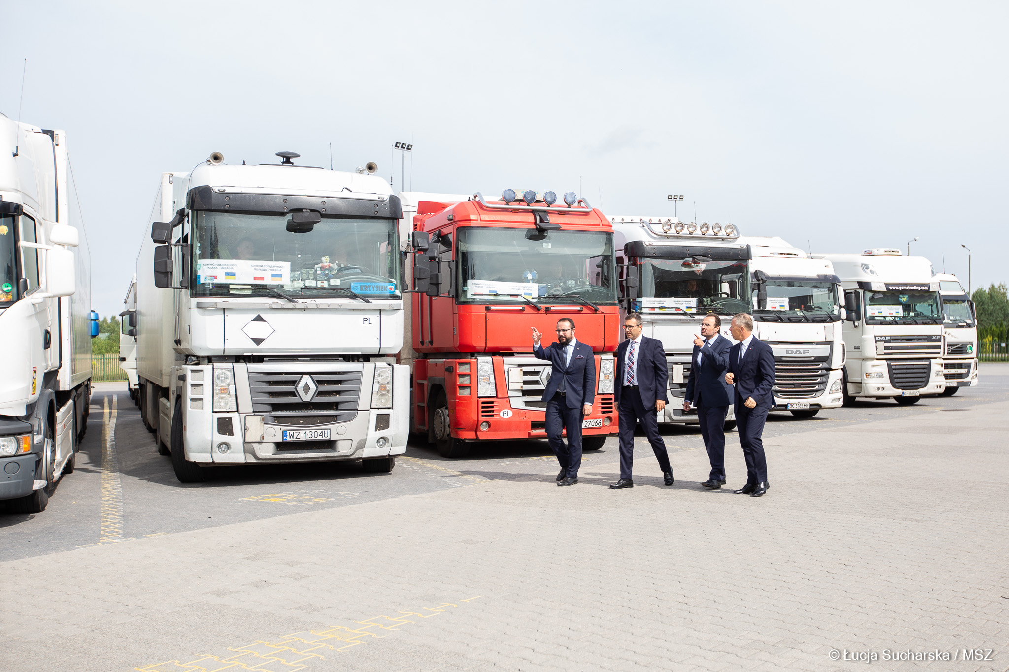W uroczystej odprawie transportu uczestniczyli minister Piotr Ćwik, Zastępca Szefa Kancelarii Prezydenta RP, Michał Kuczmierowski, prezes Rządowej Agencji Rezerw Strategicznych, Paweł Jabłoński, podsekretarz stanu w MSZ oraz Rafał Dzięciołowski, prezes Fundacji Solidarności Międzynarodowej.