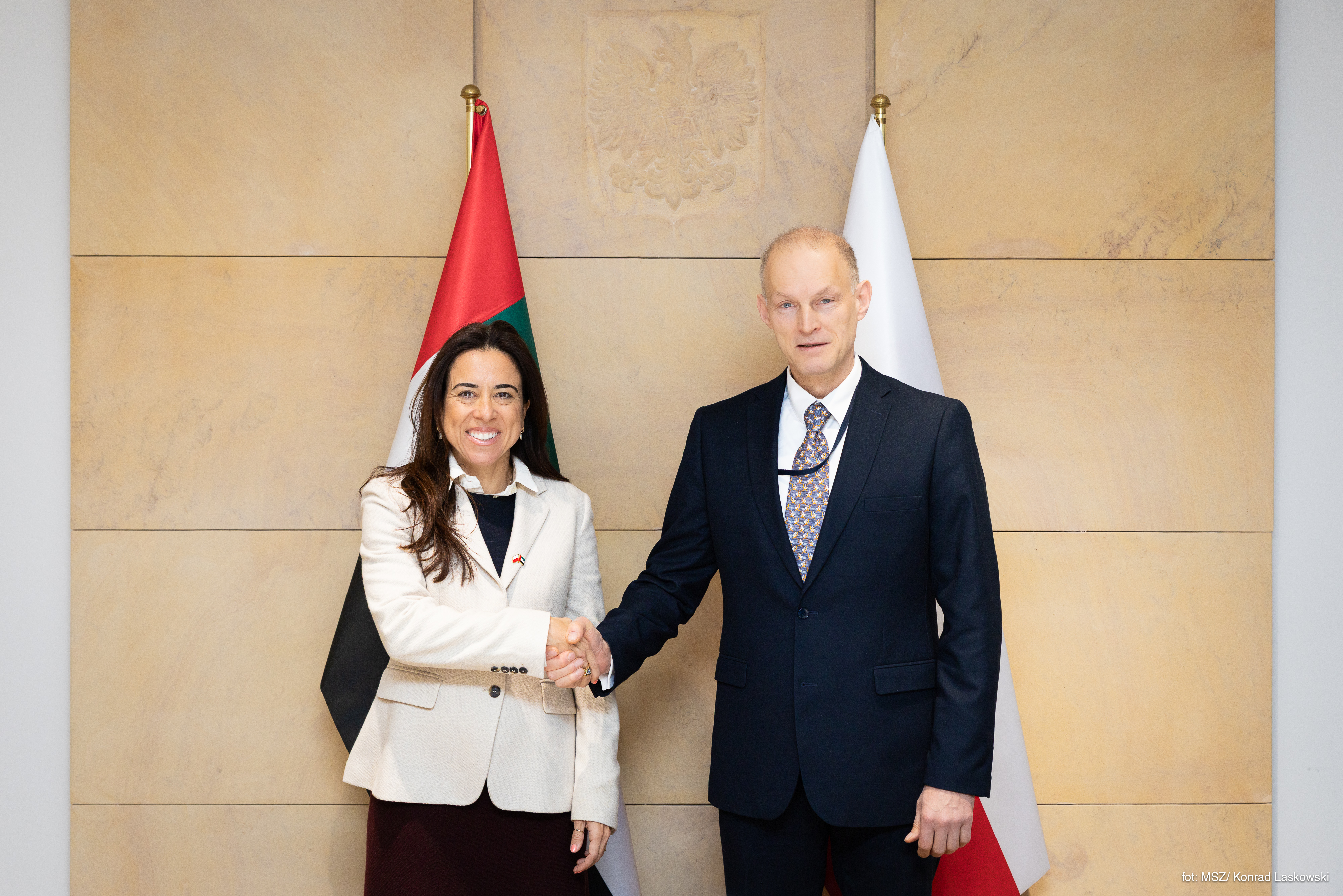 16 lutego 2026 r. w Warszawie miały miejsce konsultacje polityczne z udziałem wiceministra spraw zagranicznych Wojciecha Zajączkowskiego i Lany Nusseibeh, minister stanu ds. politycznych Państwa Zjednoczonych Emiratów Arabskich (PZEA). Tematami spotkania były stosunki Polski ze Zjednoczonymi Emiratami Arabskimi, w tym perspektywy rozwoju szerokiej współpracy bilateralnej, jak również aktualna sytuacja w Ukrainie i regionie Zatoki Perskiej. ZEA to drugi największy partner handlowy Polski wśród państw Zatoki Perskiej, a także coraz chętniej wybierany cel turystyczny Polaków.