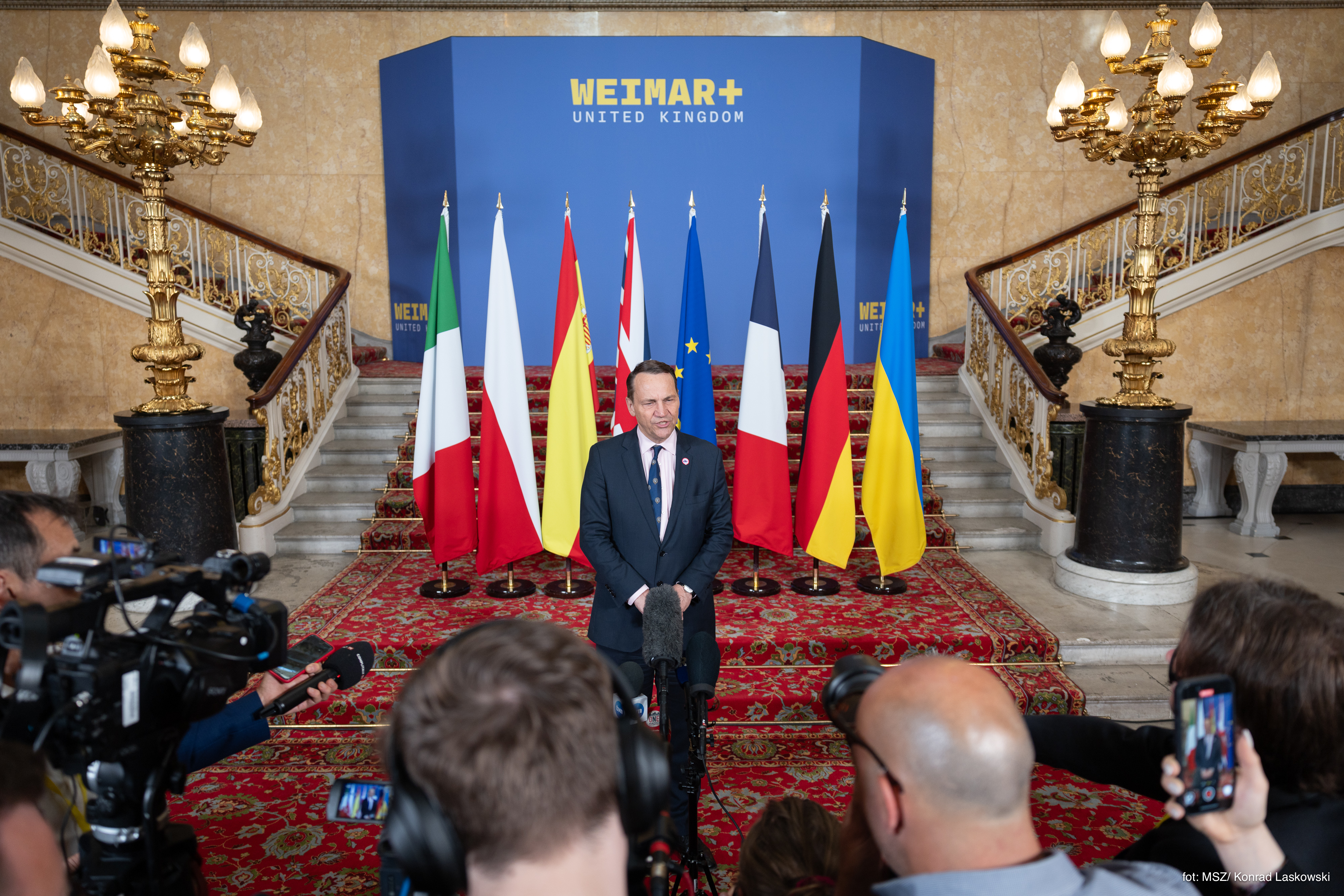 Minister Sikorski podkreślał, że zarówno w odniesieniu do zakończenia wojny, jak i wyzwań związanych z przyszłą odbudową Ukrainy, konieczne są zdecydowane i dobrze przemyślane działania wspólnoty euroatlantyckiej. Polska bierze aktywny udział w tzw. „Koalicji Chętnych”, której prace stanowią istotny, europejski wkład w działania ukierunkowane na przywrócenie pokoju w regionie. Szef polskiego MSZ zachęcał partnerów do wspierania mechanizmów unijnych i instrumentów sojuszniczych (w tym NSATU i JATEC) na rzecz Ukrainy. Podkreślał, że jest to inwestycja w bezpieczeństwo całej Europy. W naszym wspólnym interesie jest obrona przed rosyjskimi zagrożeniami o charakterze hybrydowym, cybernetycznym i dezinformacyjnym, dotykających większość państw europejskich.