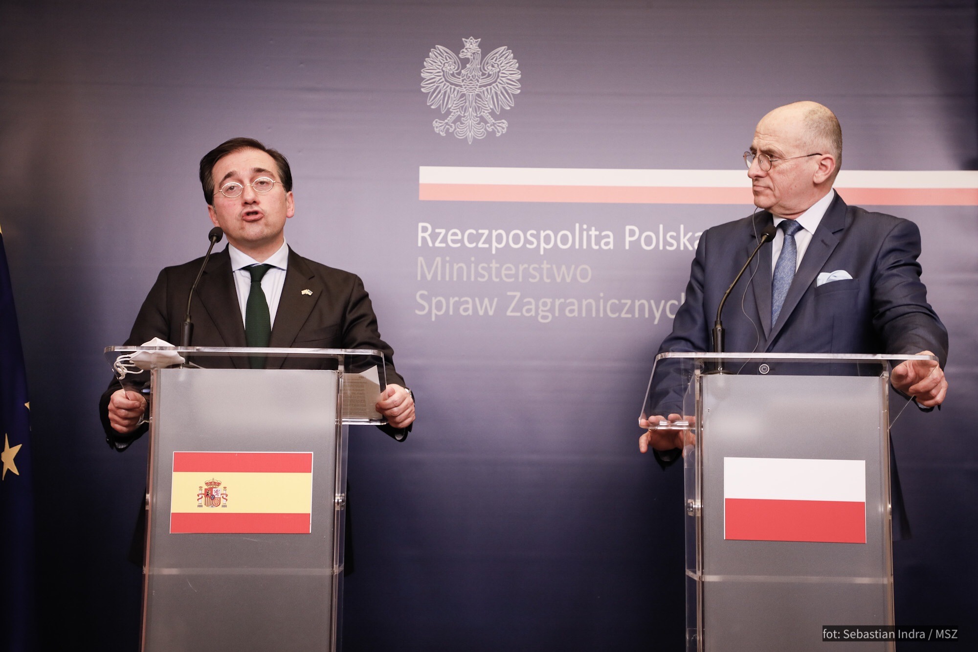 Szef hiszpańskiej dyplomacji podziękował za starania Polski na rzecz wsparcia humanitarnego dla ludności Ukrainy oraz za pomoc, jakiej udzieliła Polska w ewakuacji hiszpańskich dyplomatów i obywateli z zaatakowanej przez Rosję Ukrainy. Zwrócił uwagę, że Hiszpania aktywnie angażuje się we wspieranie uchodźców poprzez pomoc humanitarną o niespotykanej do tej skali i poprzez przyjmowanie uchodźców na terytorium Hiszpanii. Zamierza także kontynuować wsparcie wojskowe dla Ukrainy.