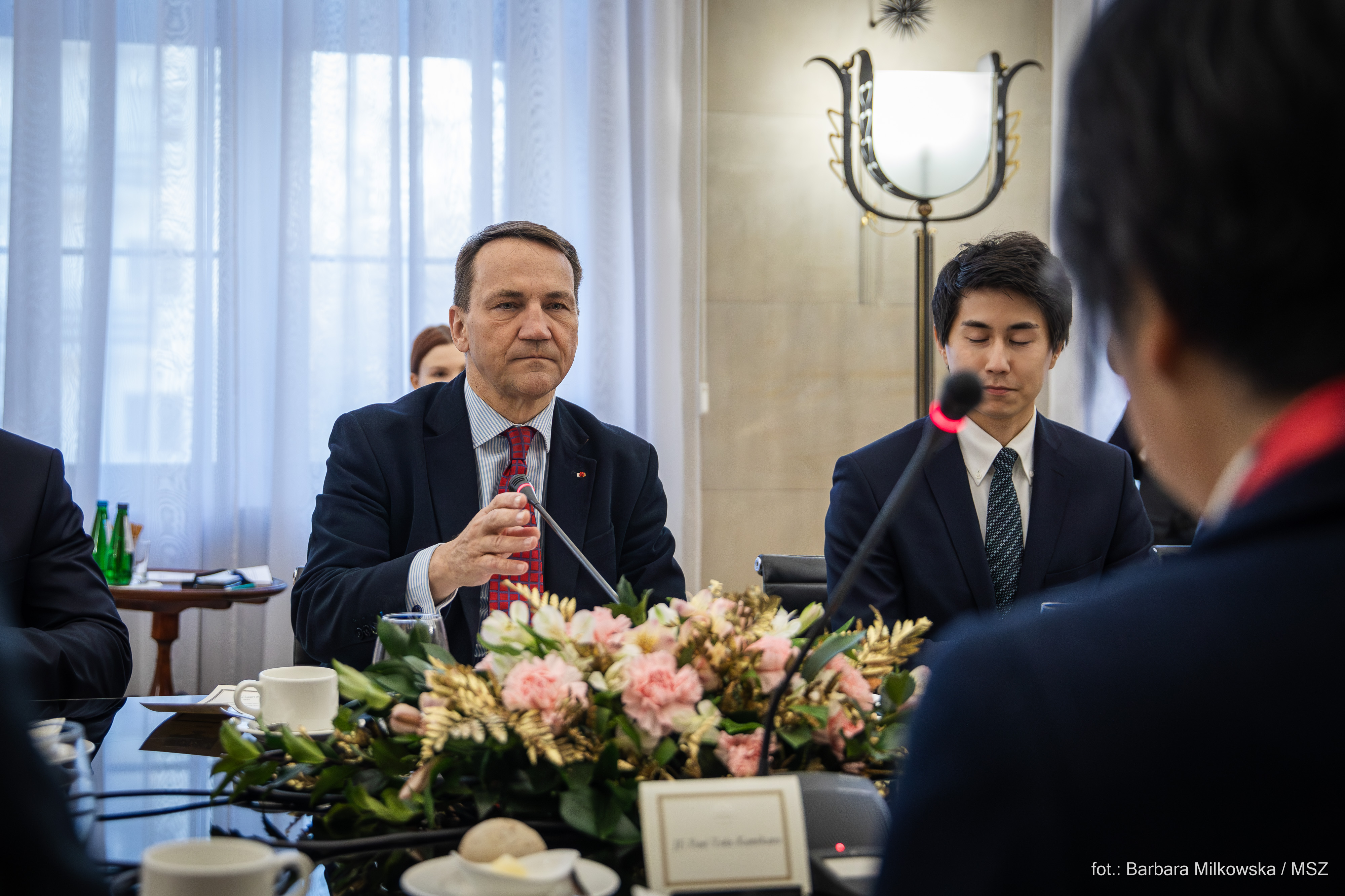 W trakcie spotkania ministrowie pozytywnie ocenili dorobek polsko-japońskiego partnerstwa strategicznego, które łączy oba państwa od 2015 r. Wśród najważniejszych płaszczyzn współpracy minister Sikorski wymienił dialog polityczny, współpracę ekonomiczną oraz naukową, a także kwestie z zakresu bezpieczeństwa i obrony. Rozmówcy z uznaniem odnieśli się do wszechstronnego charakteru dwustronnych relacji ekonomicznych i roli Japonii jako czołowego pozaeuropejskiego inwestora w Polsce. Obie strony odnotowały potencjał tkwiący we współpracy w dziedzinie zaawansowanych technologii.