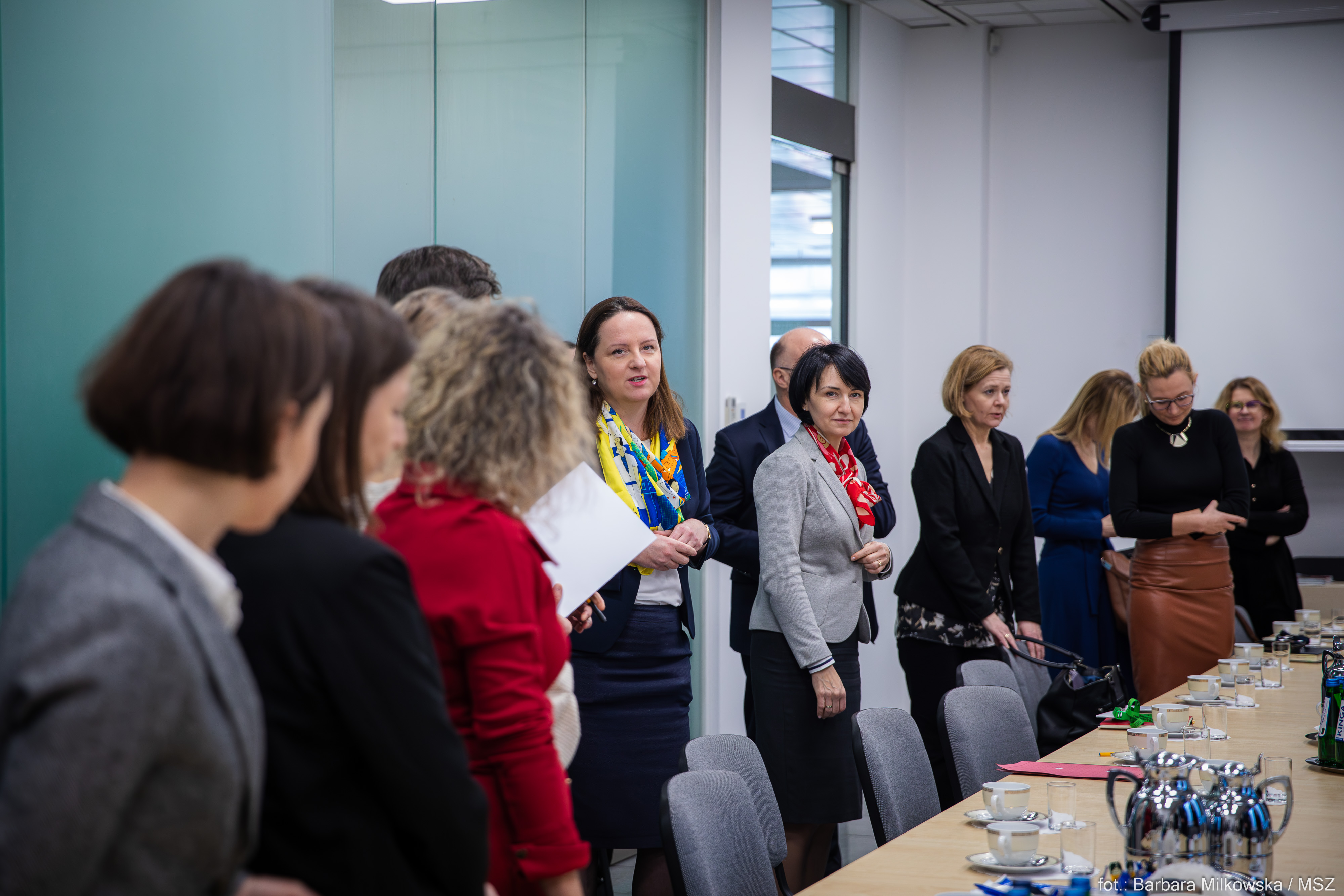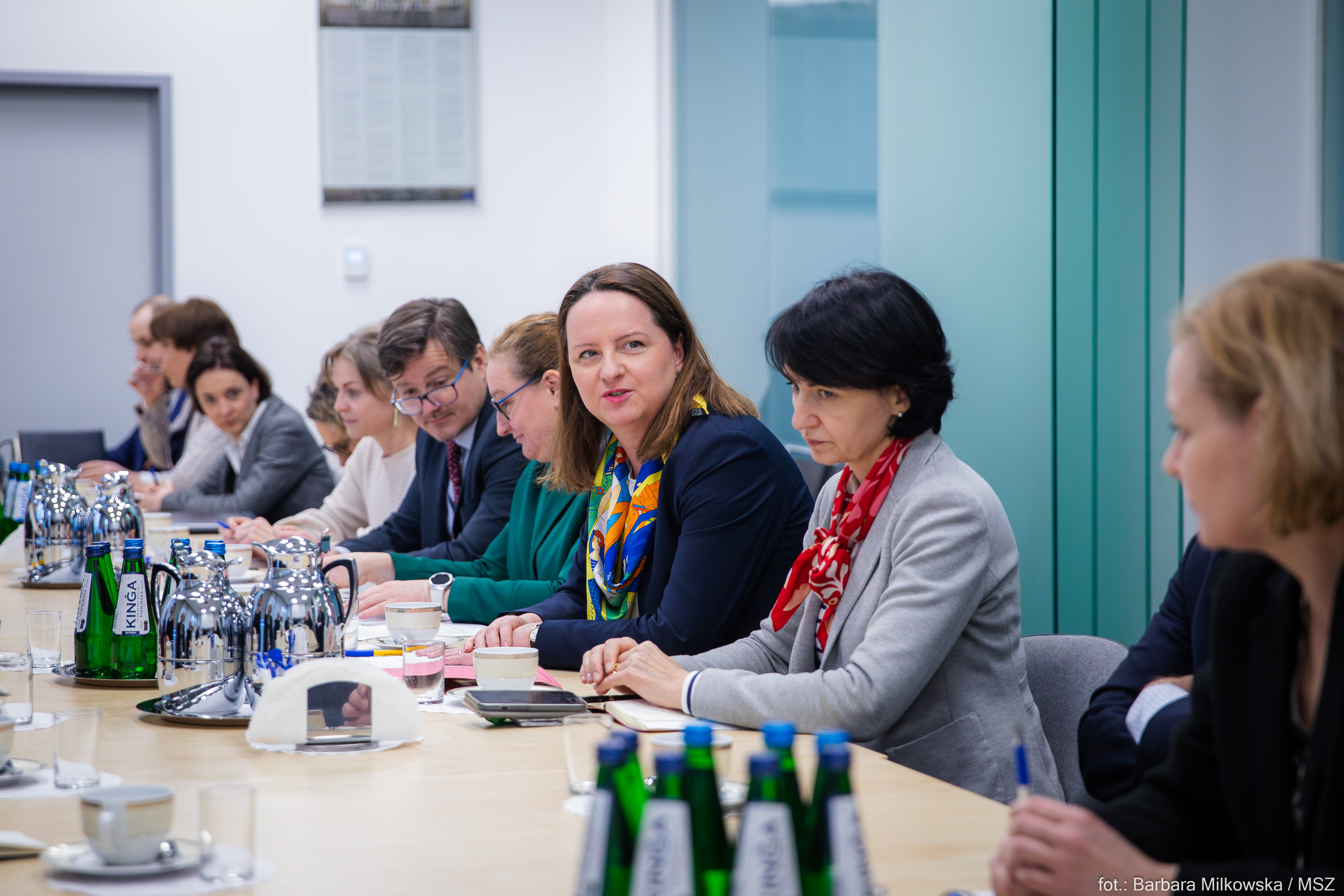 W spotkaniu wzięli także udział: Podsekretarz Stanu Pani Henryka Mościcka-Dendys, Szef Służby Zagranicznej i Dyrektor Generalny Służby Zagranicznej Pan Rafał Wiśniewski oraz przedstawicielki i przedstawiciele kierownictwa departamentów i biur MSZ. Przedmiotem dyskusji były mechanizmy i propozycje działań, które pozwoliłyby na wzmocnienie pozycji kobiet w służbie zagranicznej i zwiększenie ich zaangażowania w politykę zagraniczną. Celem spotkania była również wymiana doświadczeń oraz ocena możliwości aktywnego udziału resortu dyplomacji w realizacji założeń Agendy ONZ „Kobiety, pokój i bezpieczeństwo” w związku z koniecznością przygotowania kolejnej edycji Krajowego Planu Działania na lata 2024-2029.