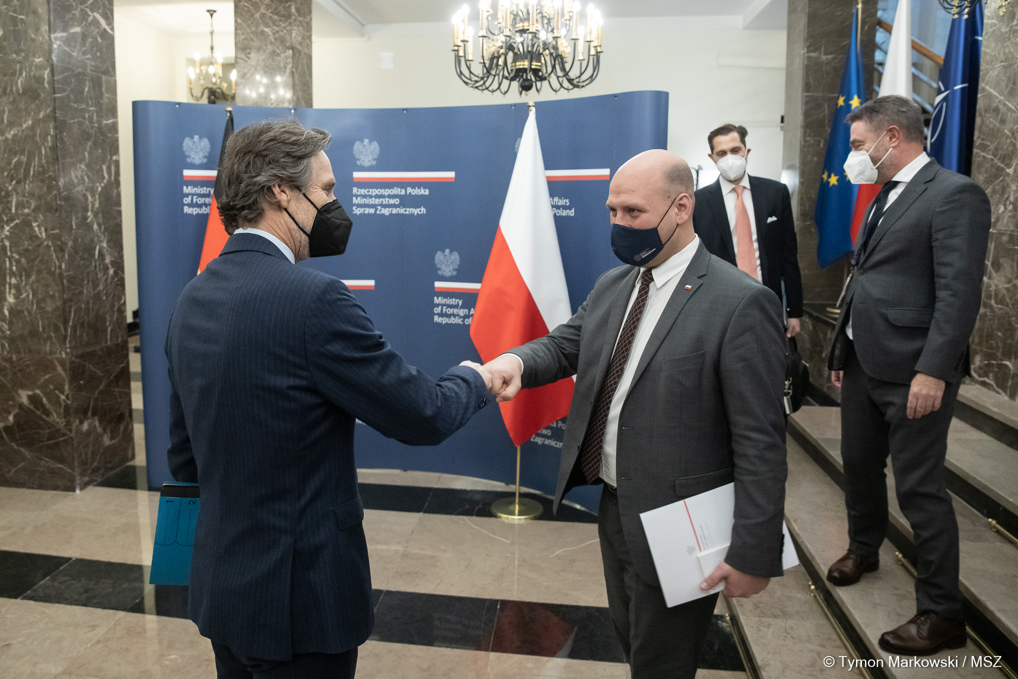 Podczas spotkania dokonano analizy rozwoju sytuacji na Ukrainie w kontekście potencjalnego zagrożenia atakiem ze strony Rosji, jak też oceny sytuacji na granicy polsko – białoruskiej. W obliczu aktualnych wyzwań w polityce wschodniej, wiceminister ponownie wyraził zdecydowanie krytyczną ocenę projektu Nord Stream 2, wskazując jego wielowymiarowe szkodliwe skutki dla bezpieczeństwa energetycznego całego regionu. Jens Plötner zapewnił o pełnym wsparciu Niemiec dla wysiłków polskiego przewodnictwa w Organizacji Bezpieczeństwa i Współpracy w Europie w tak wymagającym czasie. Wiceminister Szynkowski vel Sęk podniósł w rozmowie kwestię reparacji za szkody poniesione przez Polskę i jej obywateli podczas II wojny światowej. Przekazał również, że strona polska w pełni docenia ideę wzniesienia w stolicy Niemiec pomnika dedykowanego pamięci polskich ofiar III Rzeszy Niemieckiej.