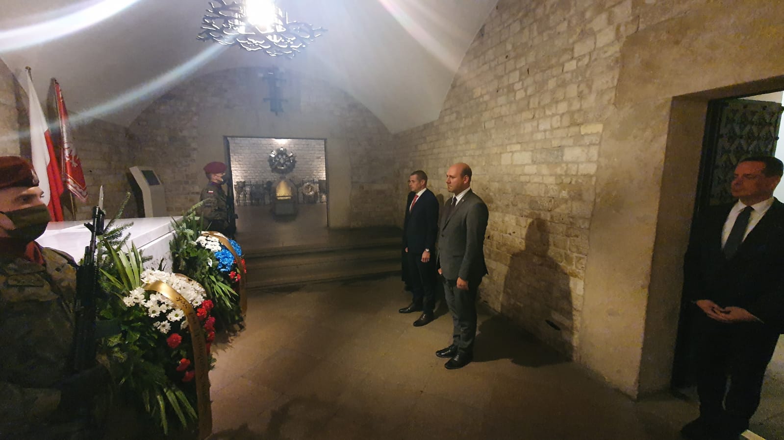 Przed spotkaniem Ministrowie złożyli wieńce na grobie Pary Prezydenckiej Lecha i Marii Kaczyńskich w krypcie na Wawelu.