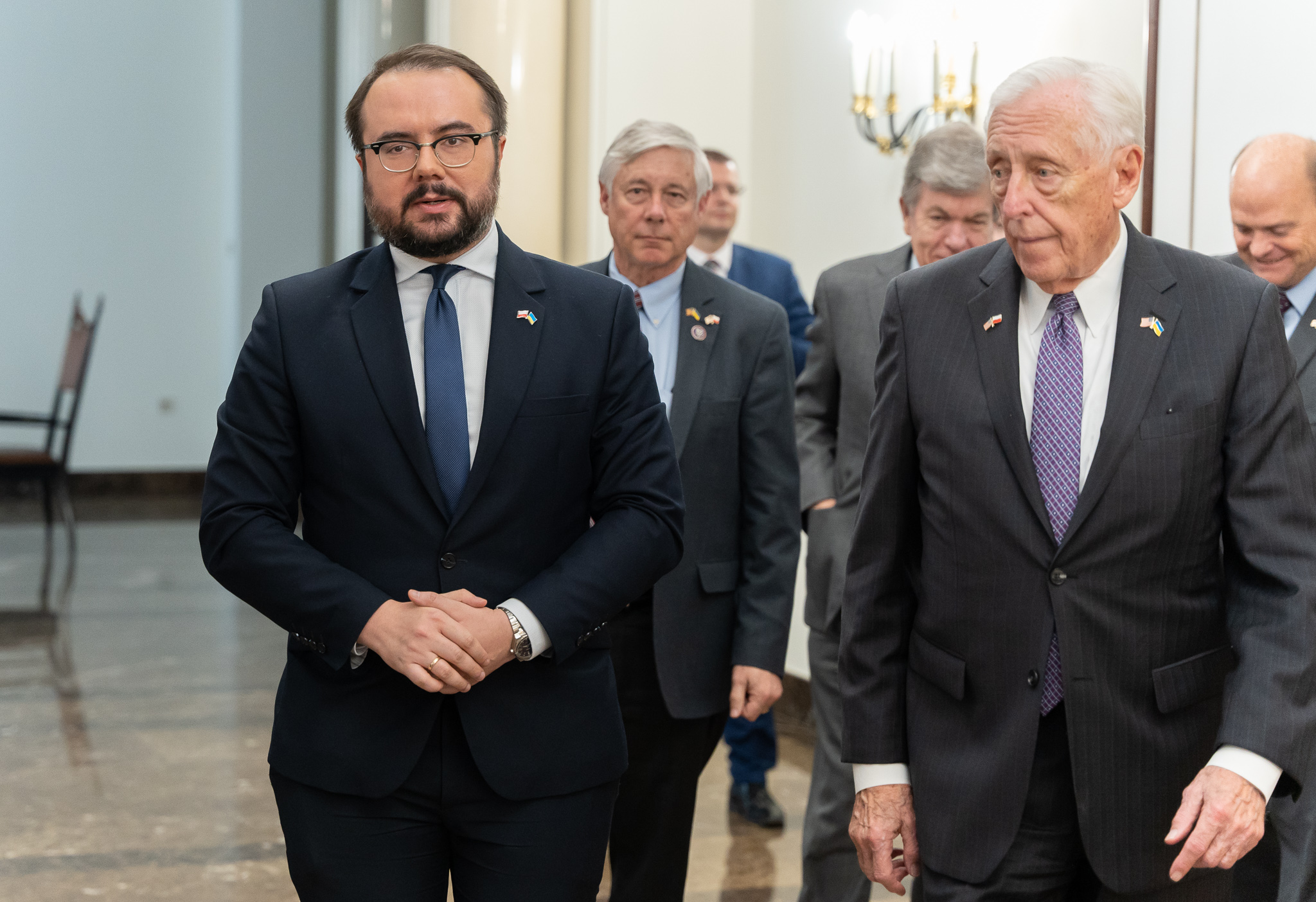 Reprezentujący ministra spraw zagranicznych Zbigniewa Raua wiceminister Paweł Jabłoński przyjął w MSZ delegację członków Kongresu USA, na czele ze Steny Hoyerem, liderem Partii Demokratycznej w Izbie Reprezentantów oraz republikańskim senatorem Royem Bluntem. Spotkanie poświęcone było wzmocnieniu polsko-amerykańskiej współpracy i koordynacji działań wobec ataku Rosji na Ukrainę.