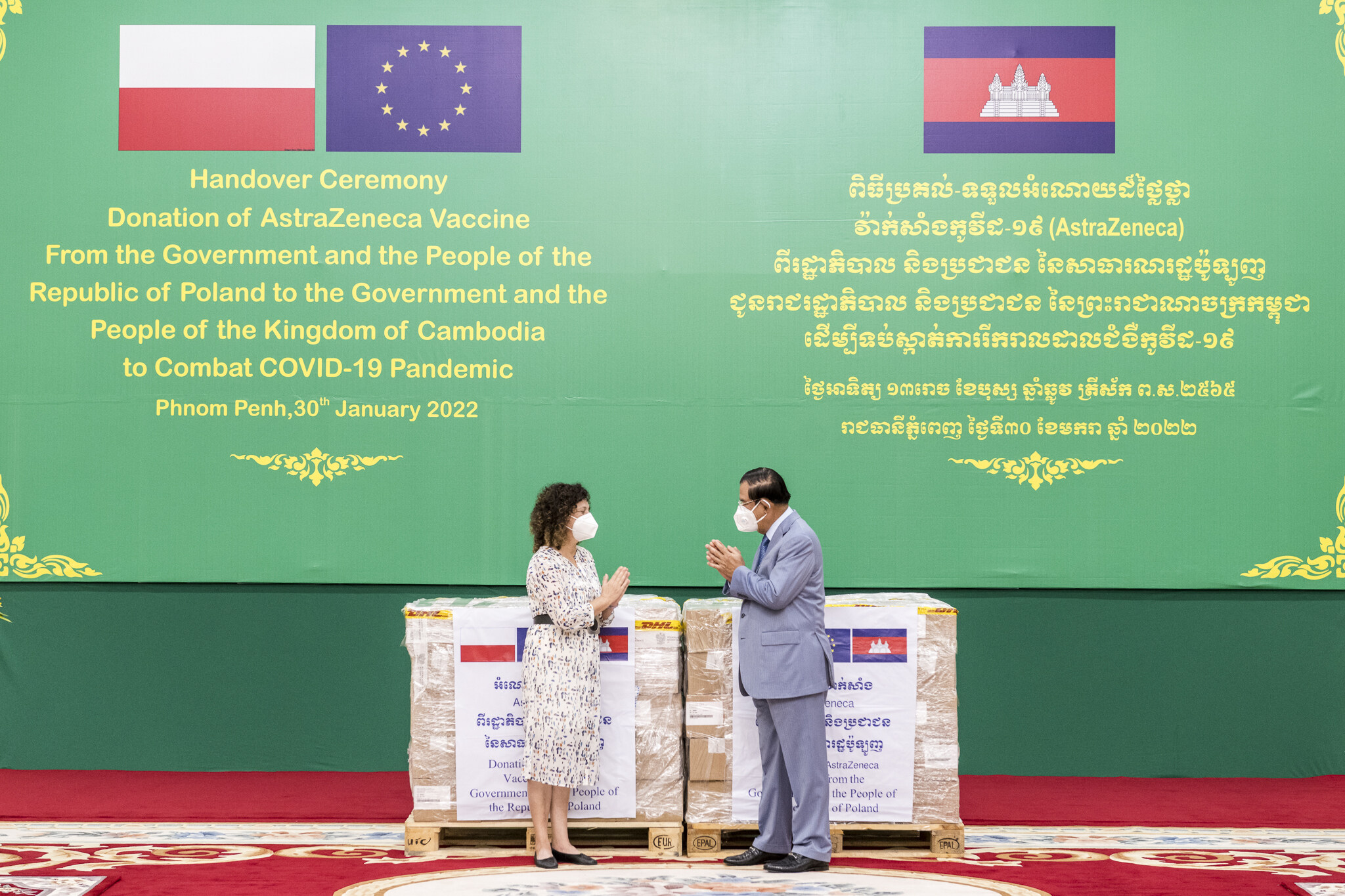 Polska wysłała do Kambodży 300 tys. szczepionek przeciwko COVID-19. Jest to pierwsza darowizna szczepionek dla tego kraju i jednocześnie akt solidarności z jednym z partnerów Polski w Azji Południowo-Wschodniej. Darowizna wzmocni program szczepień w Kambodży, a szczepionka AstraZeneca – ze względu na bardziej dogodne warunki jej transportu i przechowywania - jest jedną z preferowanych przez ten kraj szczepionek, dystrybuowanych do poszczególnych prowincji kraju.