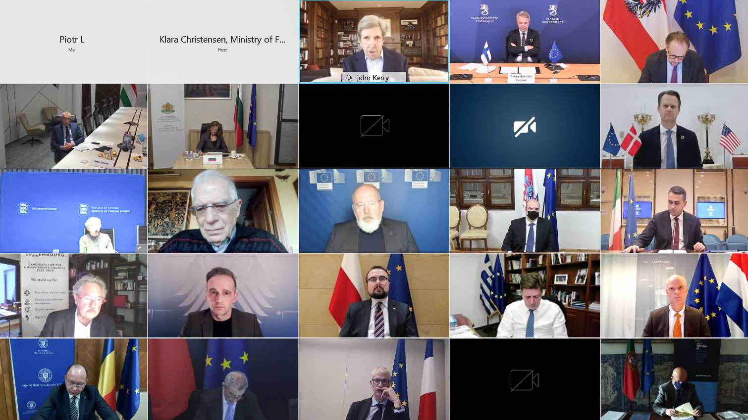 22 stycznia wiceminister spraw zagranicznych Paweł Jabłoński wziął udział w telekonferencji z pełnomocnikiem Prezydenta USA ds. klimatu Johnem Kerrym, z udziałem przedstawicieli ministerstw spraw zagranicznych państw członkowskich Unii Europejskiej, a także wiceprzewodniczącego Komisji Europejskiej Fransa Timmermansa i Wysokiego Przedstawiciela Unii Europejskiej do Spraw Zagranicznych i Polityki Bezpieczeństwa Josepa Borrella.