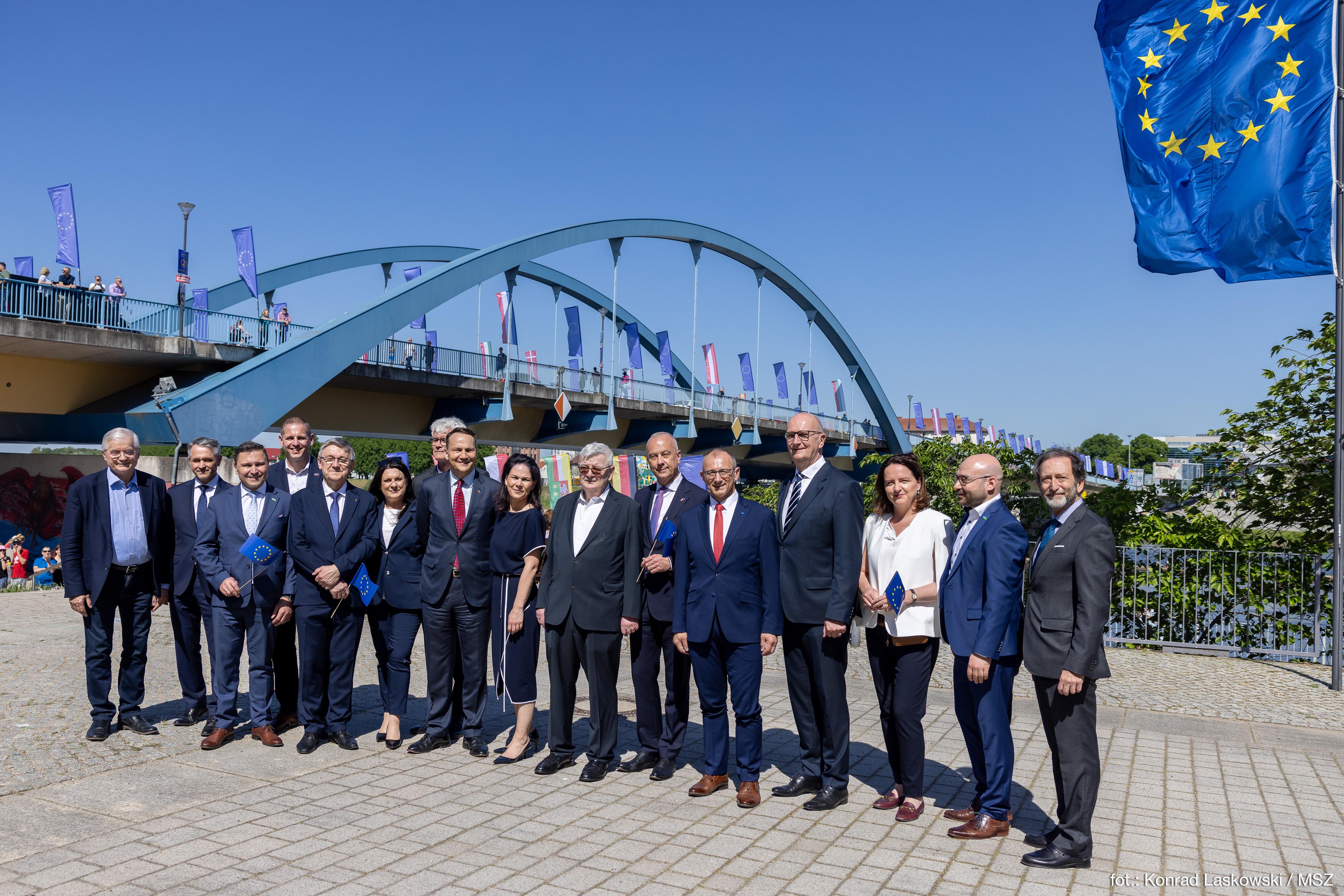 Szefowie dyplomacji Polski i Niemiec, w towarzystwie ówczesnych ministrów spraw zagranicznych obu państw – Włodzimierza Cimoszewicza i Joschki Fischera, wspólnie przeszli przez most na Odrze, zwiedzając wystawę fotografii upamiętniających akcesję Polski do UE. Na zakończenie uroczystości wzięli udział w dyskusji ze studentami Europejskiego Uniwersytetu Viadrina.