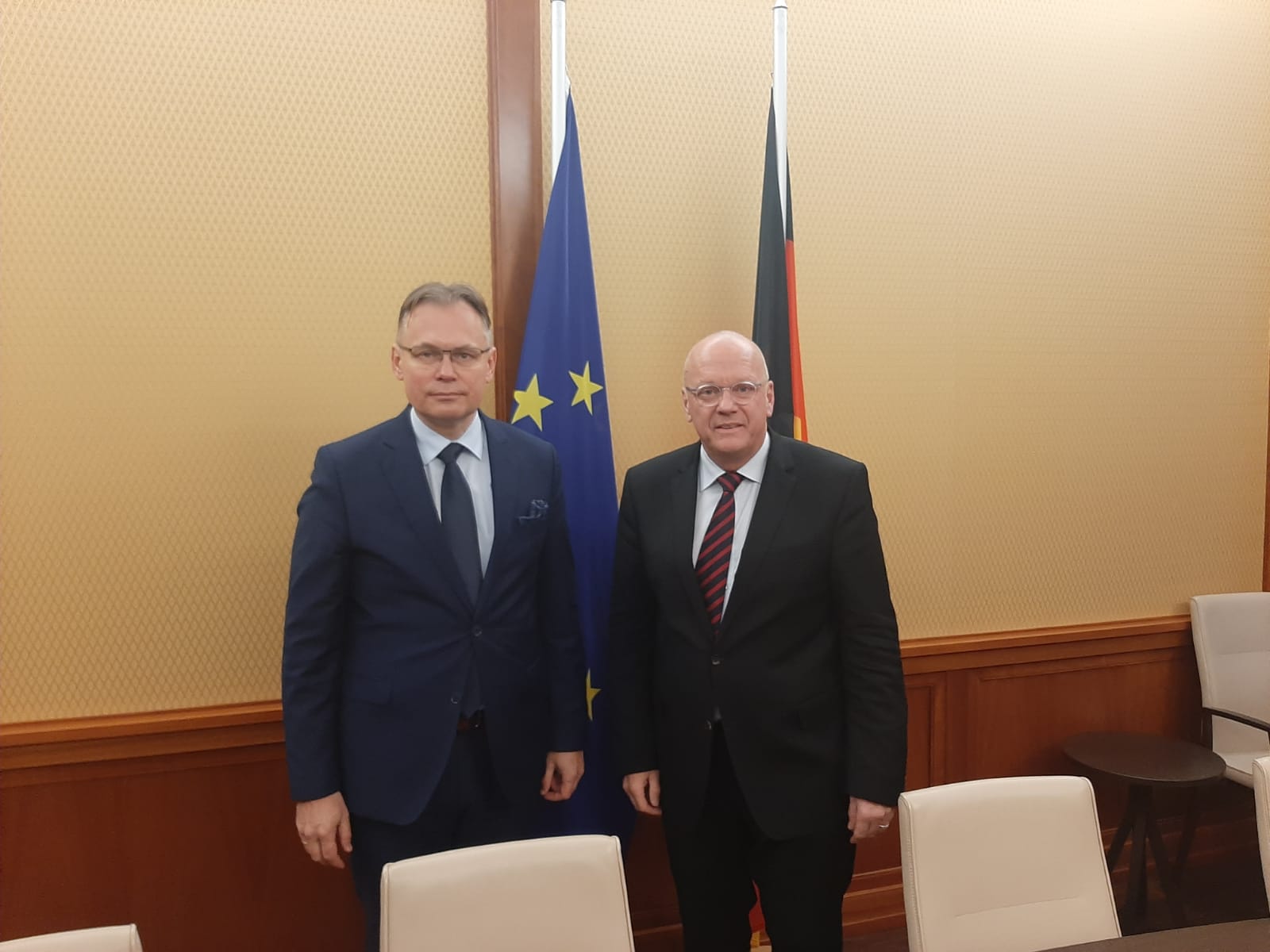 i klimatu Anną Lührmann i sekretarzem stanu Andreasem Michaelisem. Przedmiotem rozmów z niemieckimi partnerami była kwestia otwartych polskich roszczeń odszkodowawczych za straty poniesione w wyniku II wojny światowej, a także dalece niewystarczające nakłady na naukę języka polskiego jako ojczystego w Niemczech, do jakich rząd federalny jest zobowiązany na mocy przepisów Traktatu o dobrym sąsiedztwie