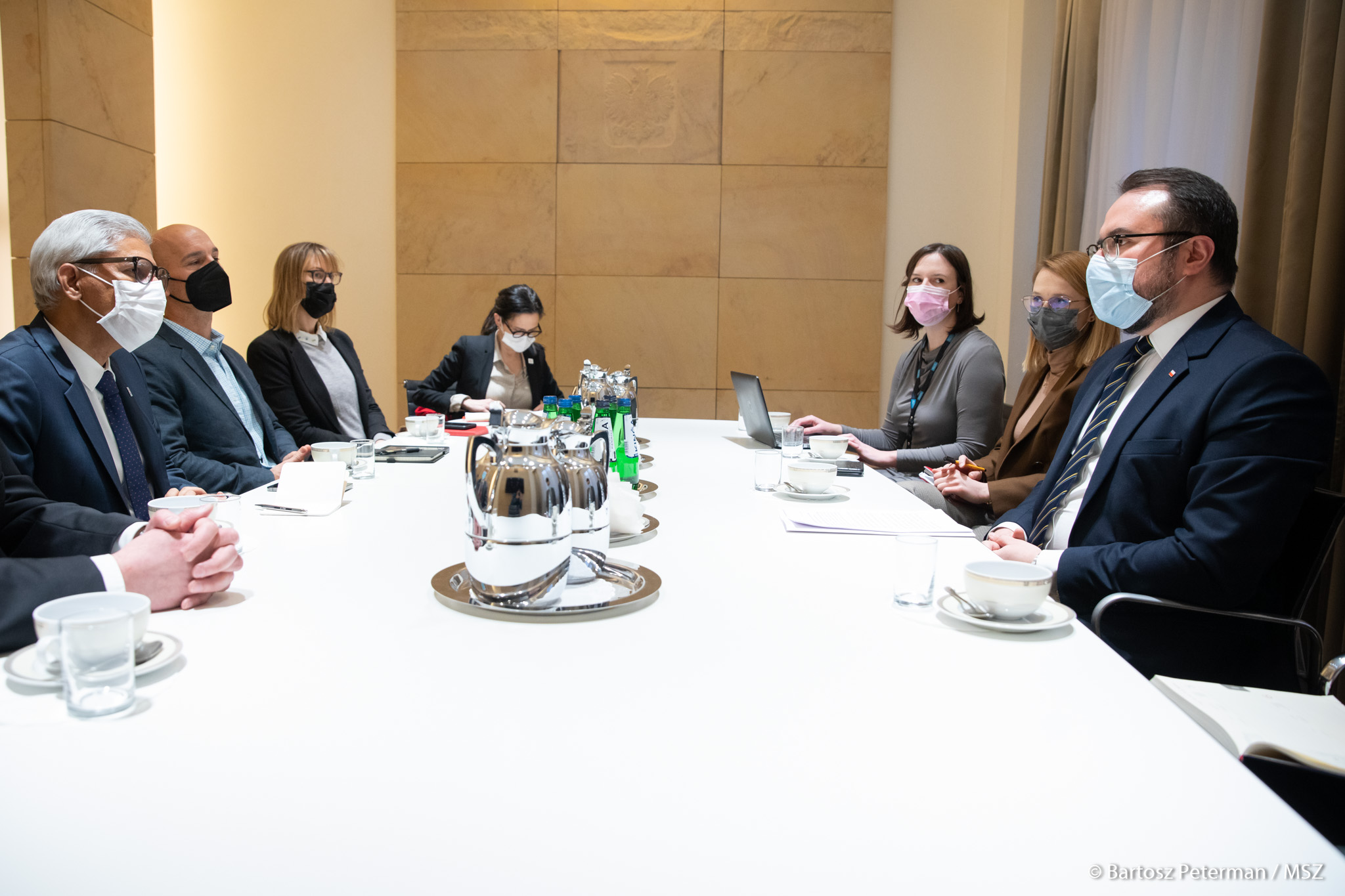 Sekretarz Chapagain zapewnił o wsparciu Federacji dla starań podejmowanych przez władze i społeczeństwo polskie, które gości uchodźców z Ukrainy. Zapowiedział, że Czerwony Krzyż planuje programy wsparcia zarówno dla Ukraińców, jak i polskich rodzin, które otworzyły swoje domy dla potrzebujących. Wceminister Jabłoński omówił bieżącą sytuację w kraju i kroki podejmowane przez rząd z myślą o długofalowych konsekwencjach kryzysu. Podkreślił jednak, że najważniejsze na obecną chwilę jest szybkie dotarcie do potrzebujących, którzy zostali na Ukrainie.