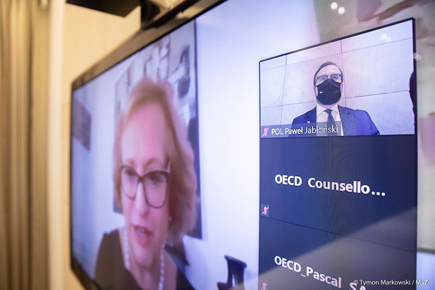 Wiceszef polskiej dyplomacji zwrócił również uwagę na konieczność wypracowania na forum OECD rozwiązań, które zminimalizują koszty odejścia od paliw kopalnych i pomogą w inteligentnej transformacji, zgodnie z Porozumieniem Paryskim i Katowice Rulebook, przyjętym podczas organizowanego w Polsce COP24. W kontekście pandemii Covid-19 minister Jabłoński podkreślił również znaczenie gospodarki cyfrowej, reformy systemów opieki zdrowotnej, w tym rozwoju e-zdrowia oraz usprawnienie zarządzania kryzysowego i poprawy zdolności reagowania na pojawiające się zagrożenia pandemiczne.
